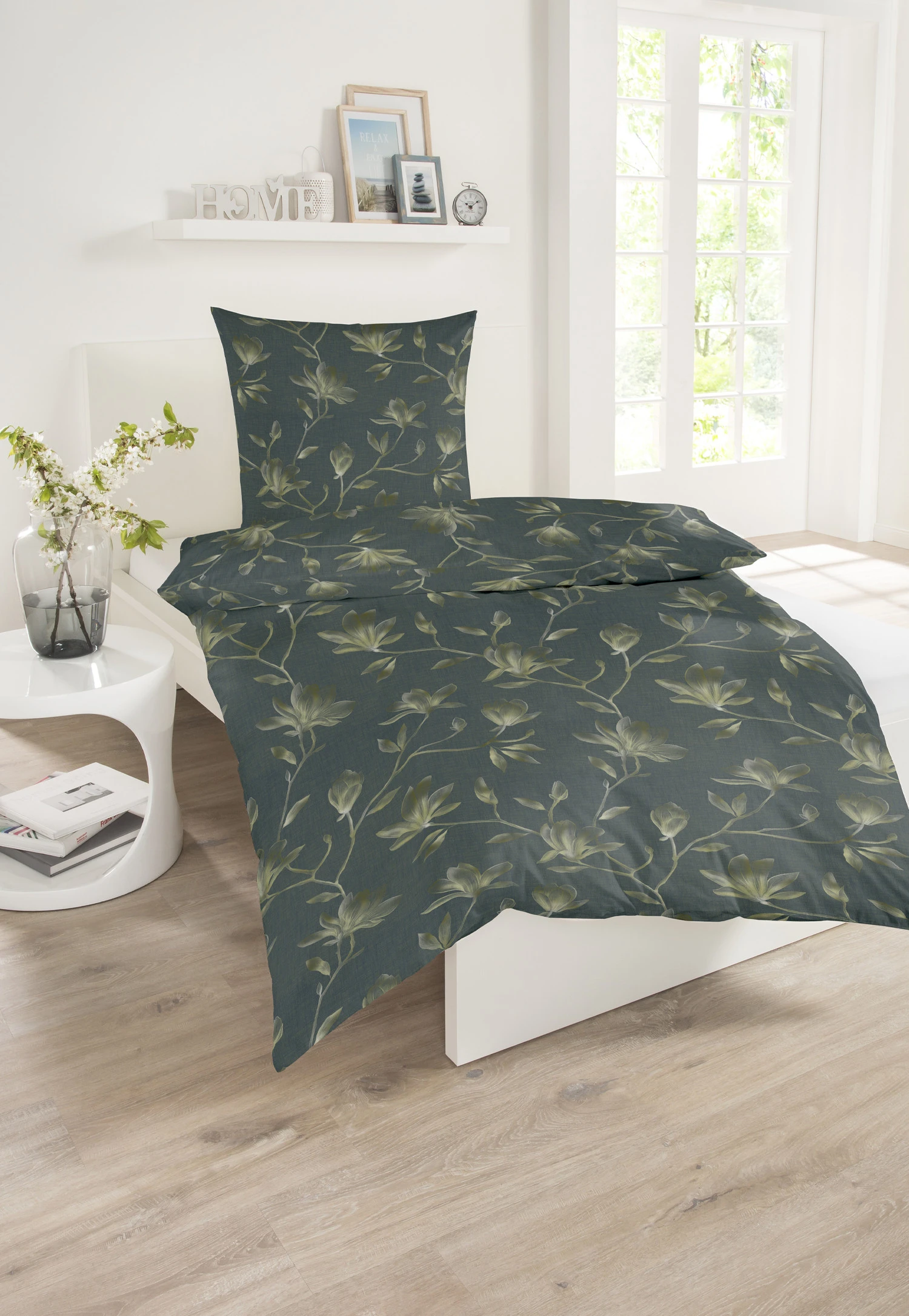 A floral pattern makes this jade-green bed linen a stylish eye-catcher in every bedroom. Thanks to the fine satin made of 100% cotton, the pillow and duvet covers are particularly easy to care for. With the convenient zipper, it is also super easy to put on. Look forward to beautiful dreams in the best SCHIESSER quality!