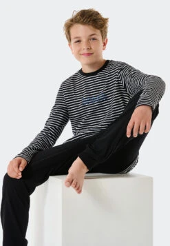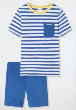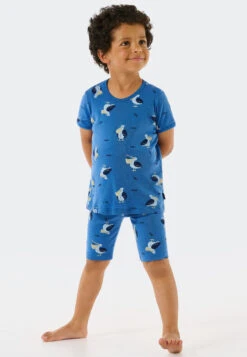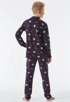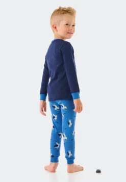 Schiesser Pajamas Long Fine Rib Organic Cotton Cuffs Leggings Pelican Fish Dark Blue – Natural Love