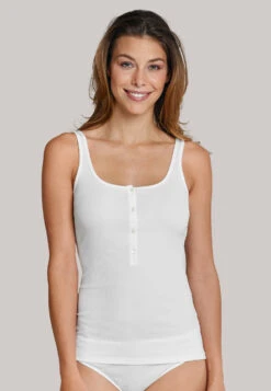 Schiesser White "FrÀuleinwunder" Strap Top Of Double Rib