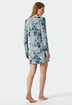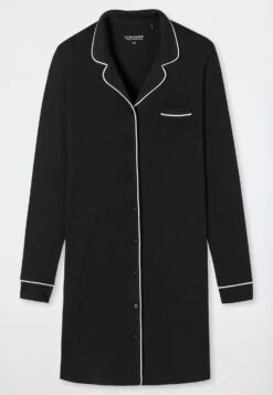 Schiesser Sleep Shirt Long-sleeved Interlock Button Placket Piping Black – Contemporary Nightwear