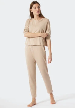 Schiesser Pajamas Long Modal Oversized Shirt Short-sleeved Sand-color Stripes – Modern Nightwear