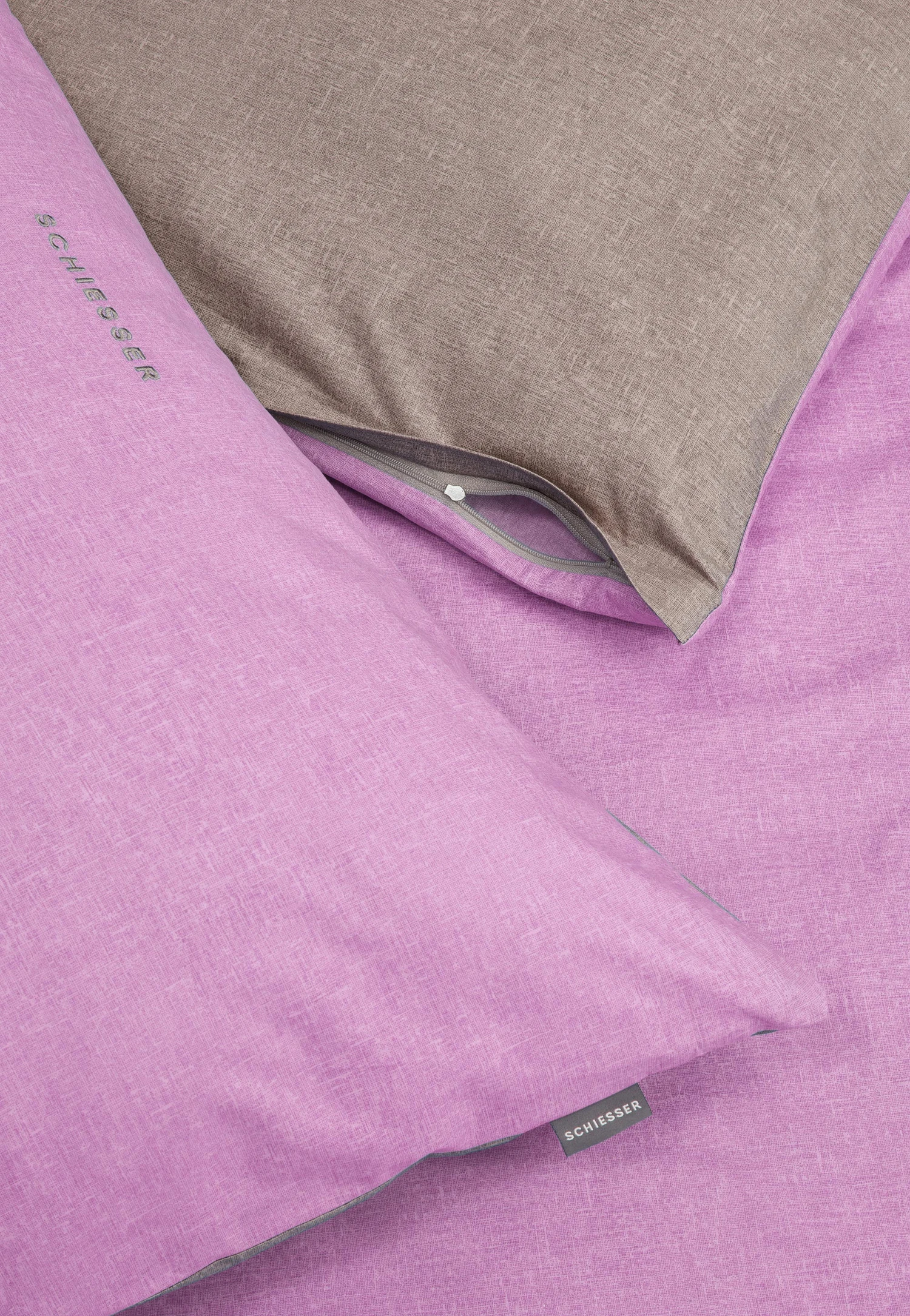 This two-piece reversible bed linen set adds some fashionable flair to your bedroom! Temperature-regulating Renforcé made of 100% cotton not only feels wonderfully soft on the skin, but also scores points with its practical, high-quality zipper! With one side in rosé and the other in brown, this duvet and pillowcase will surprise you again and again – in the best SCHIESSER quality, of course!