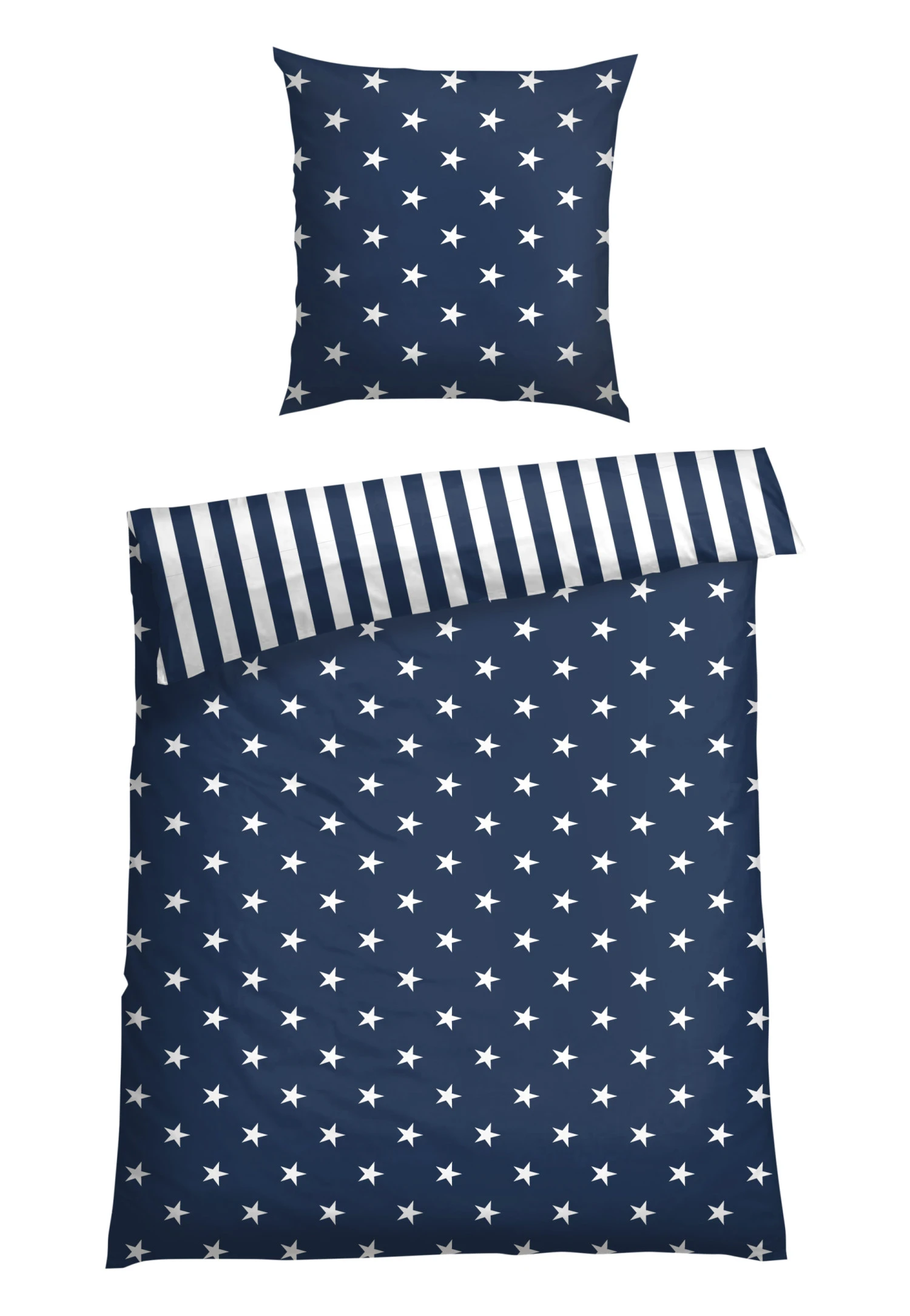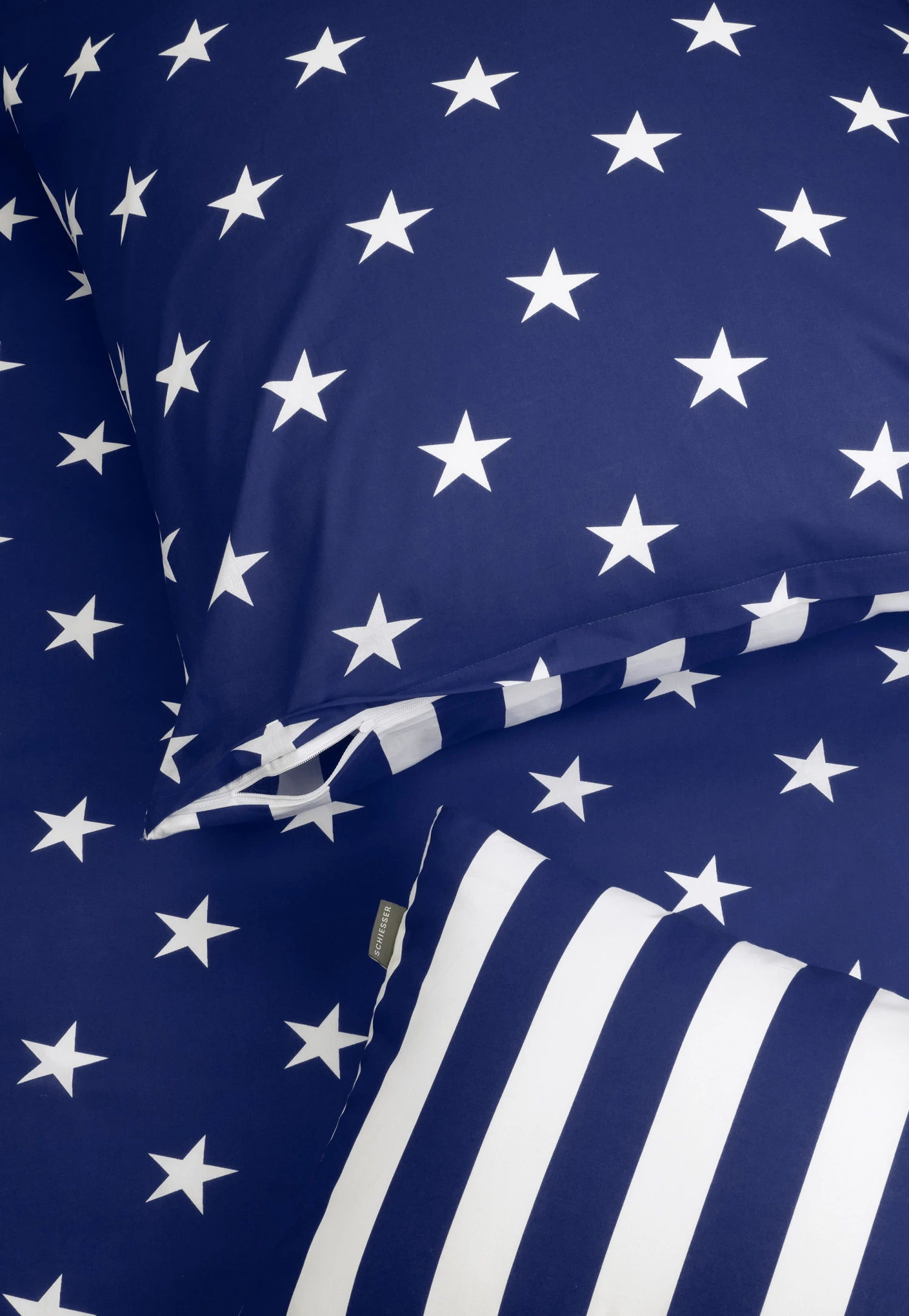 This 2-piece set of reversible bed linen will give you a fresh surprise every single day! Stars on one side and stripes on the other add a charming look to your pillowcase and duvet cover. The temperature-regulating renforcé material made from 100% cotton feels wonderfully soft against your skin and gets a top score for convenience thanks to the high-quality zipper. A real dream team in top SCHIESSER quality!