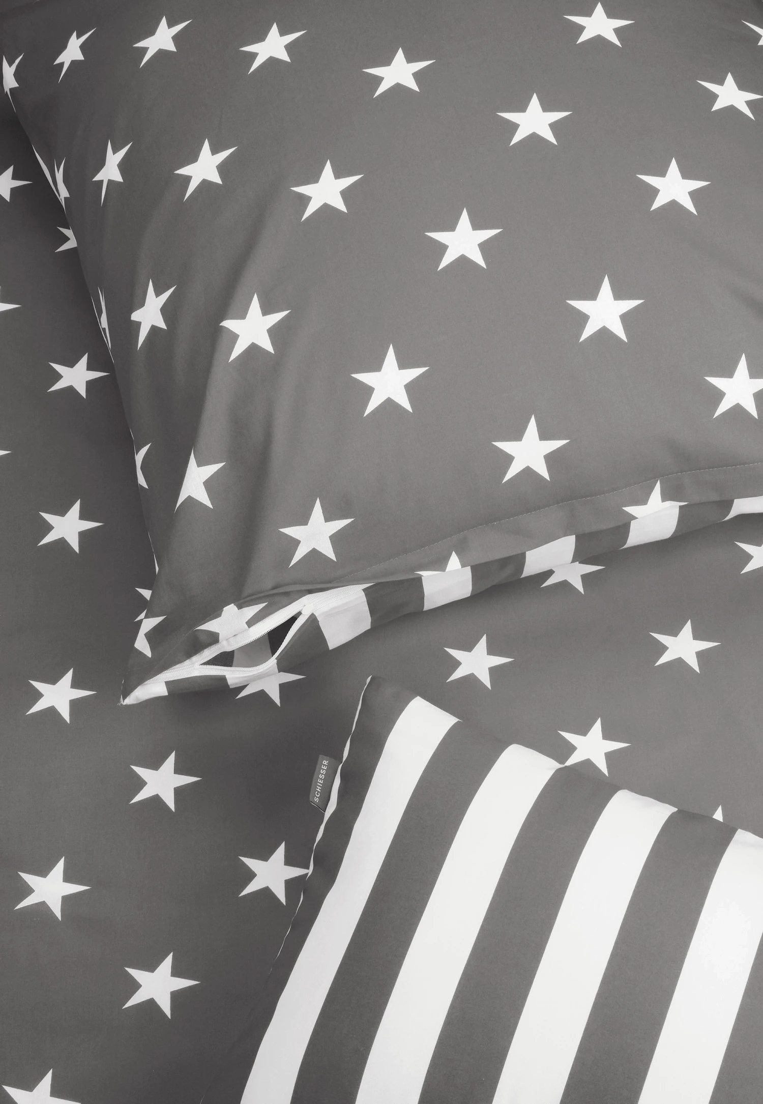 This 2-piece set of reversible bed linen will give you a fresh surprise every single day! Stars on one side and stripes on the other add a charming look to your pillowcase and duvet cover. The temperature-regulating renforcé material made from 100% cotton feels wonderfully soft against your skin and gets a top score for convenience thanks to the high-quality zipper. A real dream team in top SCHIESSER quality!