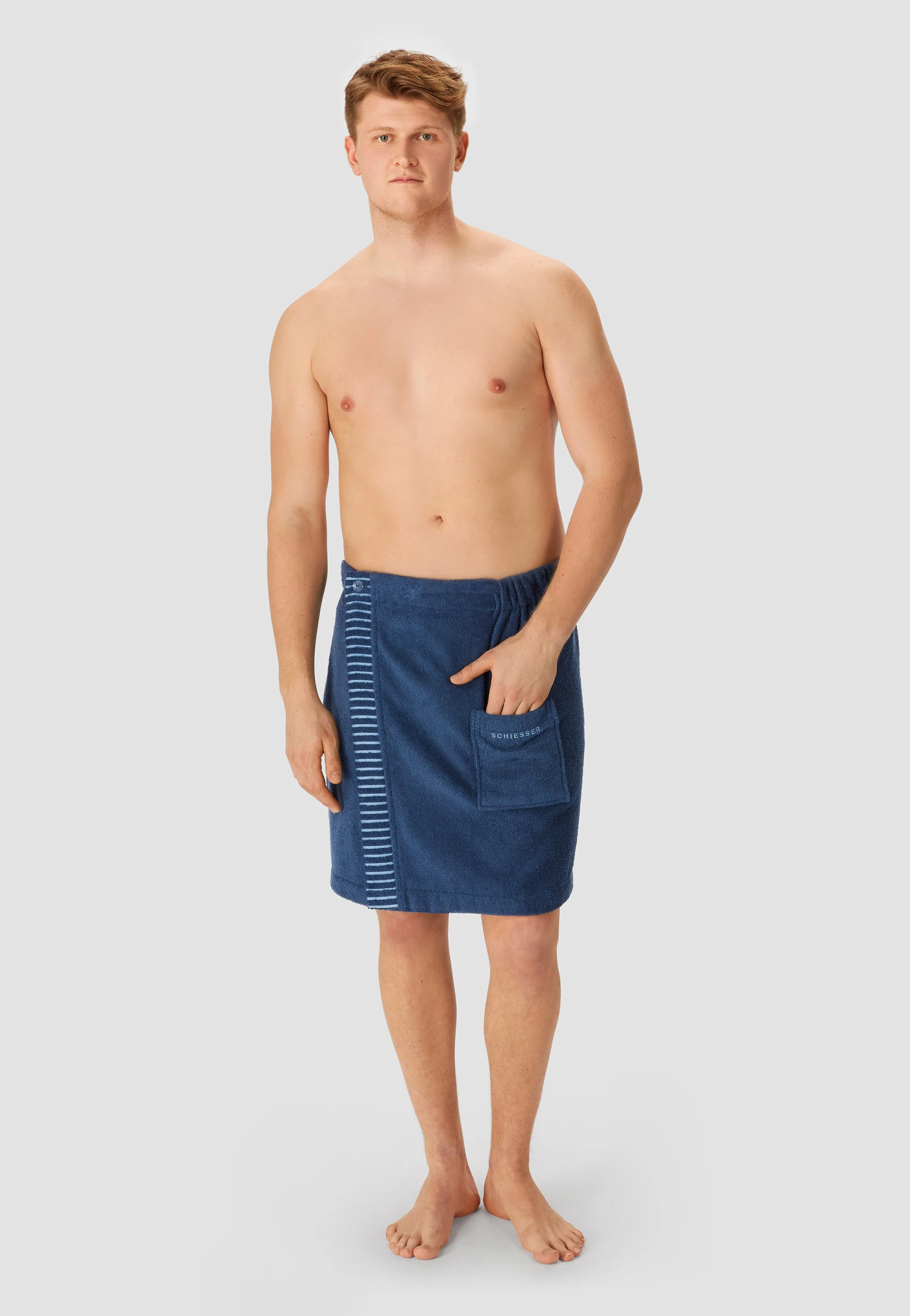 - Navy-colored sauna towel for men from the SCHIESSER Home collection