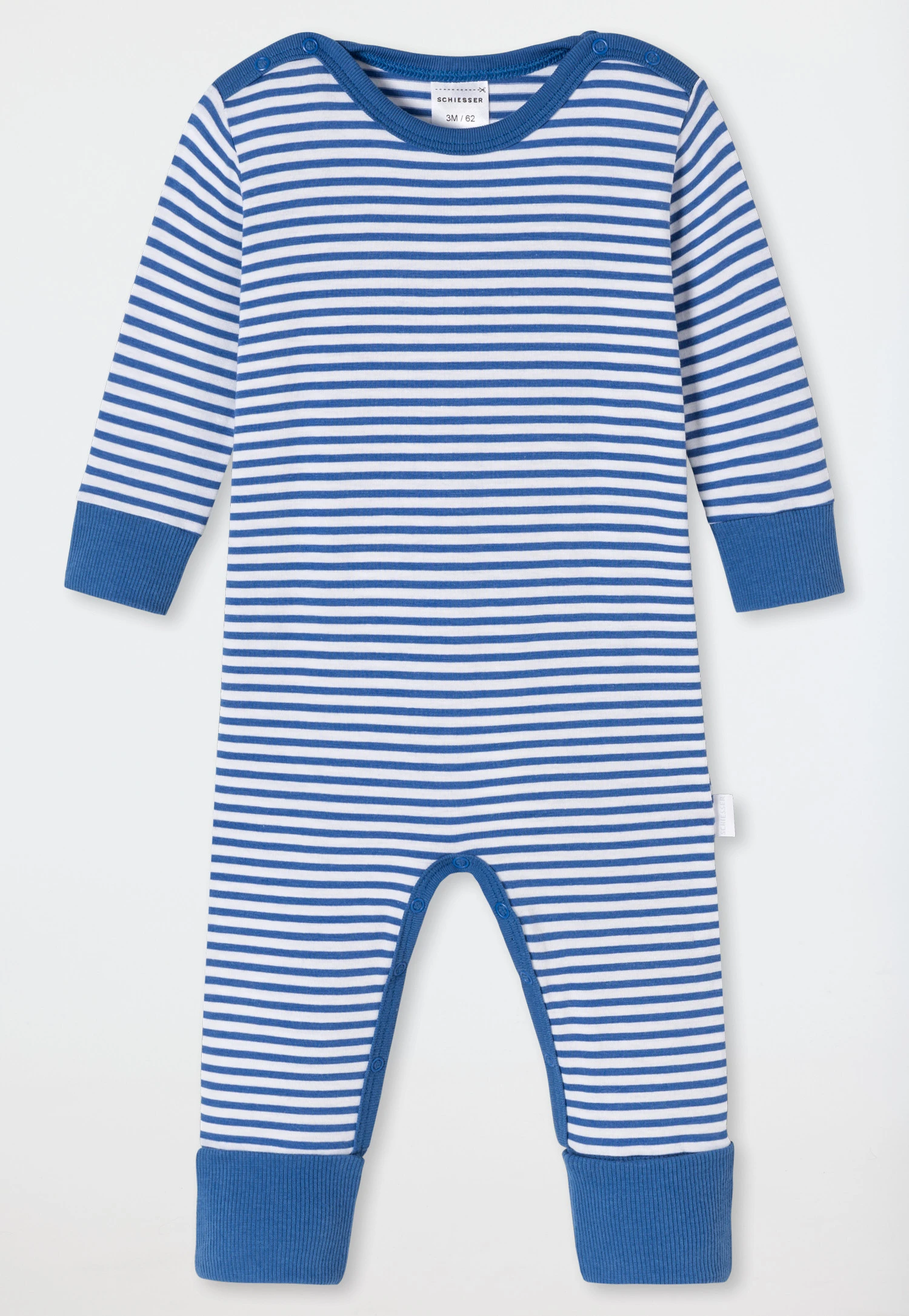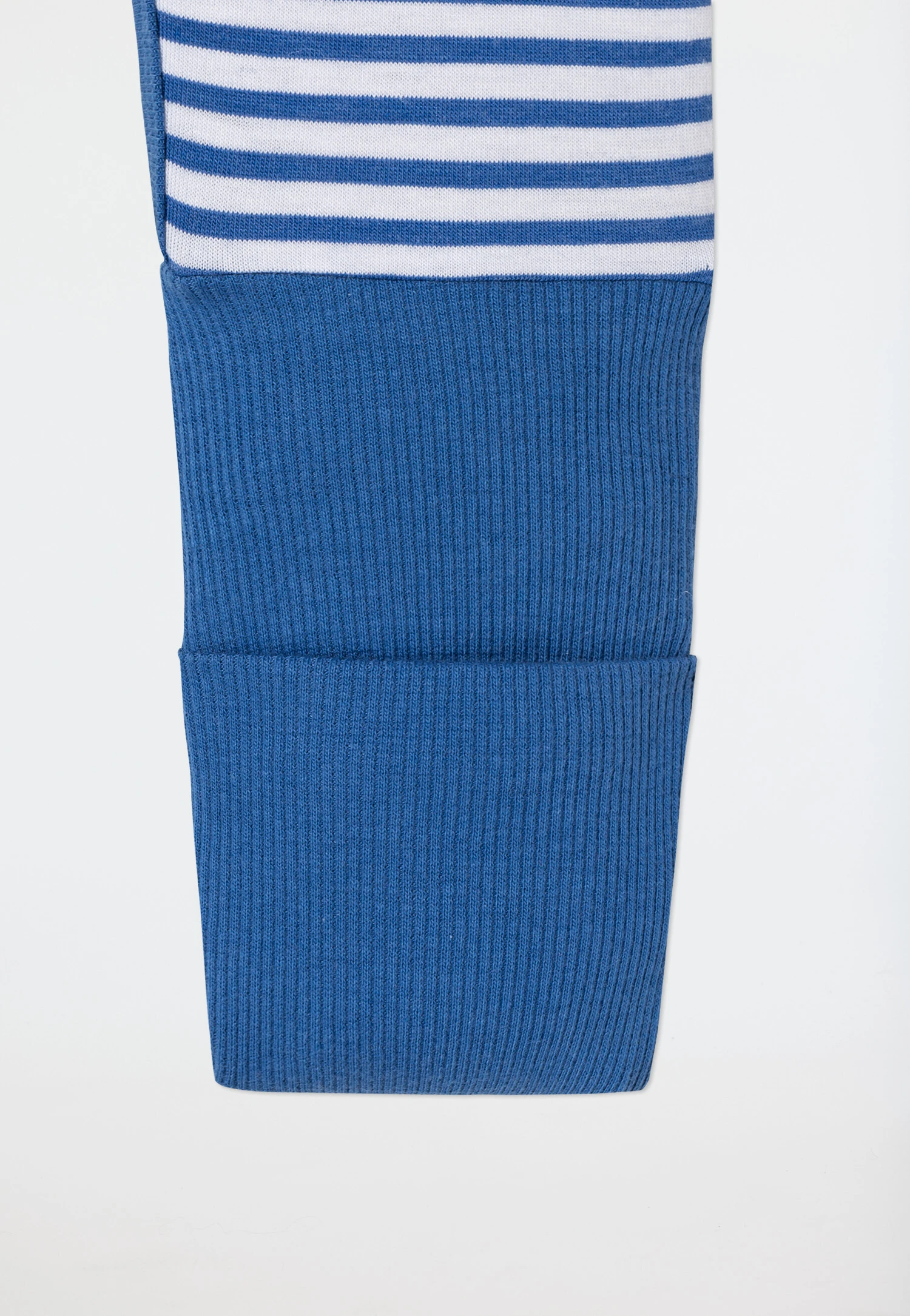 This long, striped unisex baby onesie in aqua blue will put you in a great mood! On warm summer nights, the feel-good fabric made of cotton-bamboo are particularly breathable and ensure all-round comfort. The cute striped pattern gives the comfortable sleepwear a maritime look. Thanks to the variable sleeve and leg cuffs, this one-piece is a true jack of all trades and wins you over with its practical snap button placket – in the best SCHIESSER quality, of course!