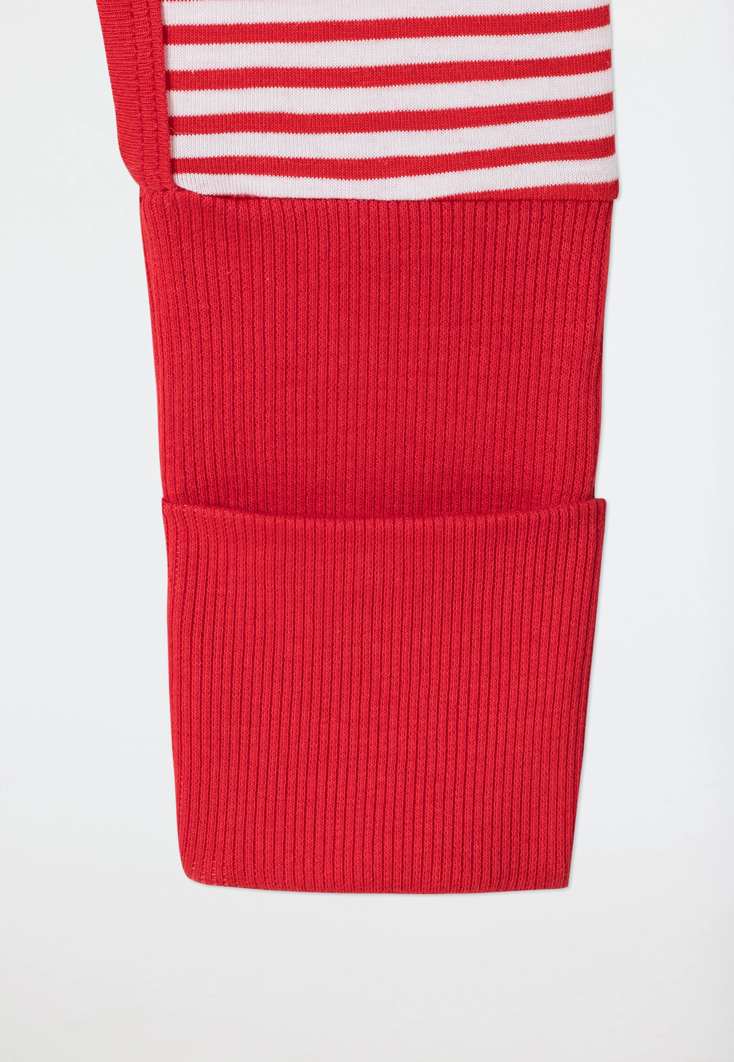 This long, striped unisex baby onesie in red puts you in a great mood! On warm summer nights, the feel-good fabric made of cotton-bamboo are particularly breathable and ensure all-round comfort. The cute striped pattern gives the comfortable sleepwear a maritime look. Thanks to the variable sleeve and leg cuffs, this one-piece is a true jack of all trades and wins you over with its practical snap button placket – in the best SCHIESSER quality, of course!
