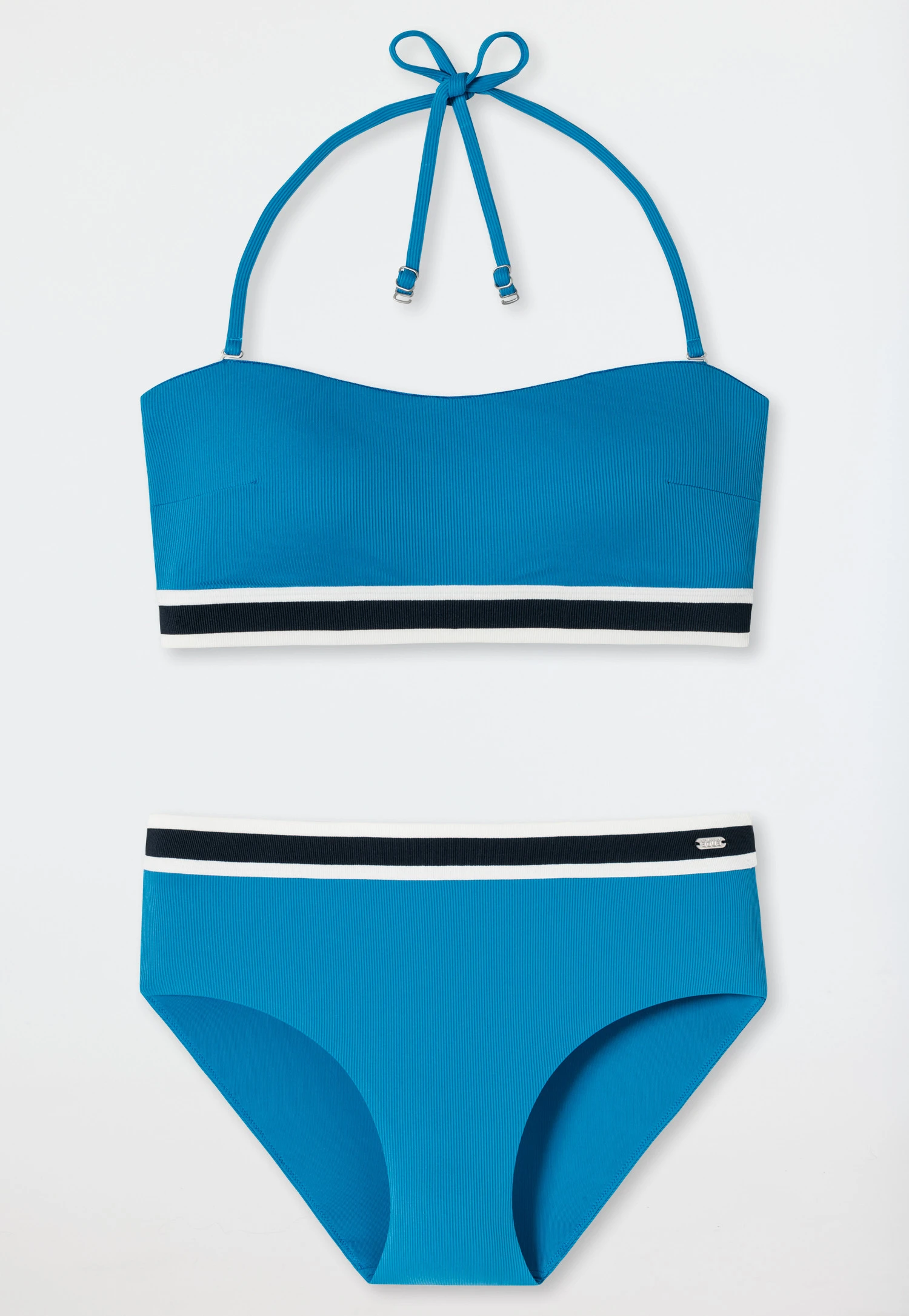 - aquarium-colored lined bandeau bikini set for women in a fashionable ribbed look
