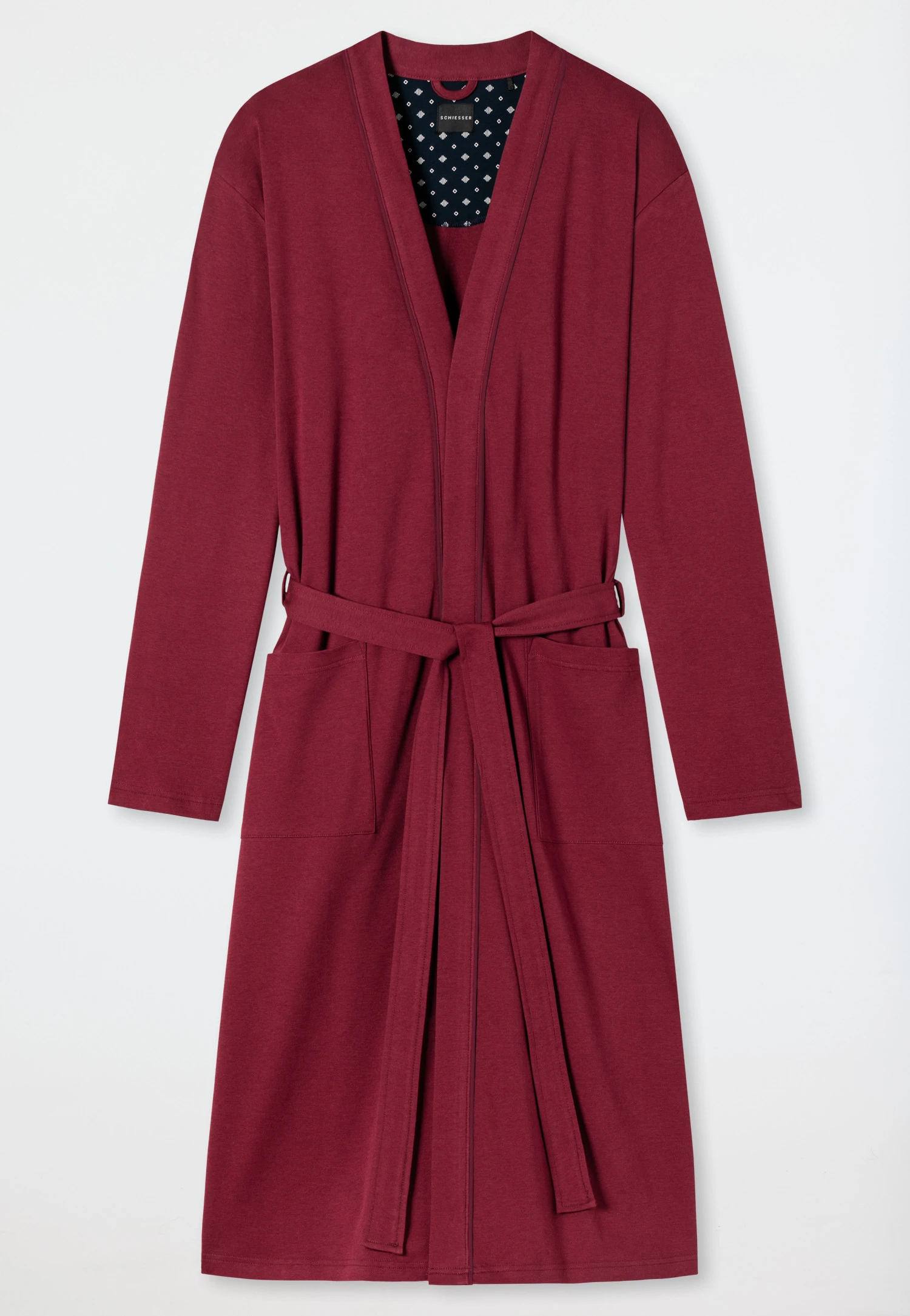 This men’s bathrobe combines style with maximum comfort! Fine interlock fabric made from 100% organic cotton ensures a pleasant feel and comes into its own with the classic kimono cut with patterned piping. Two patch pockets and a sash serve as practical details. The perfect bathrobe for staying in – in the best SCHIESSER quality, of course!