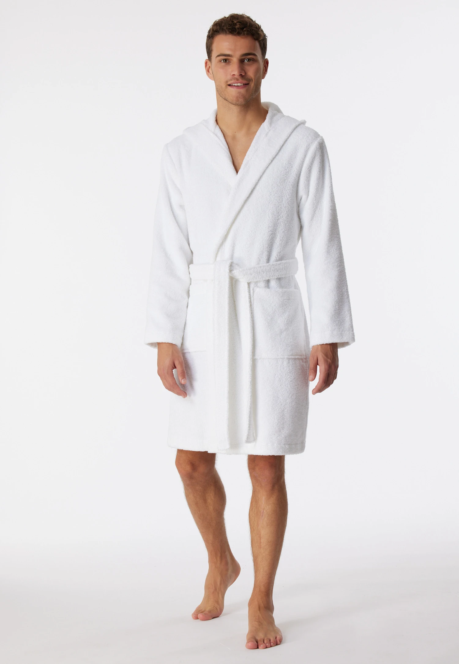 Let us introduce… our men’s bathrobe for all occasions! The high-quality, warming terry cloth made from 100% sustainable cotton creates a cozy feeling on your skin and features such practical details as a large hood, a tie belt and two patch pockets. Whether you wear it after a shower, at the spa or while reading the newspaper in the morning – this terry cloth robe is always the right companion for you!