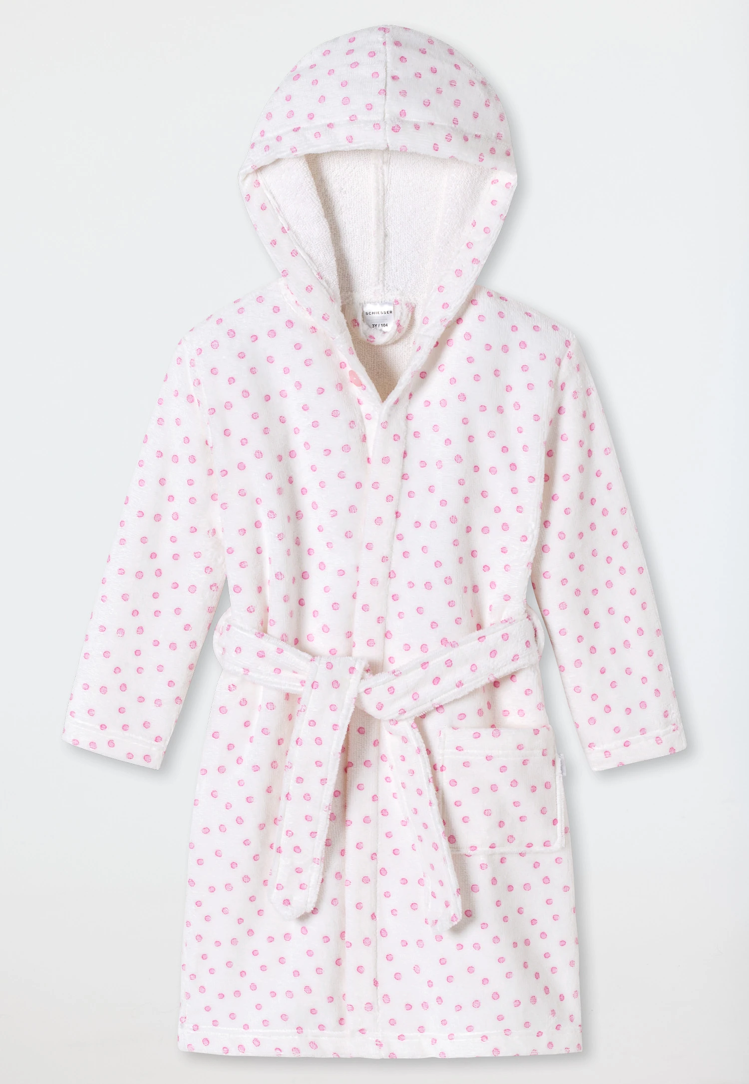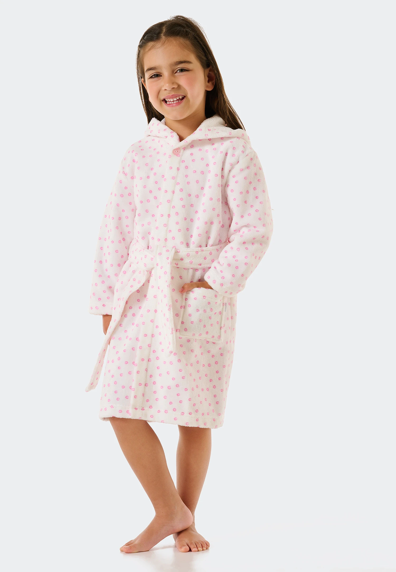 Let us introduce… your little mermaid’s cuddly new favorite! This girls’ bathrobe not only looks pretty with its cute polka dots it’s also heavenly soft! The secret is the soft velour and of course the finest, sustainable cotton in the very best SCHIESSER quality. All that’s left to add is the large hood, an uncomplicated tie belt and a pocket and you’ve got everything you need to start feeling good!