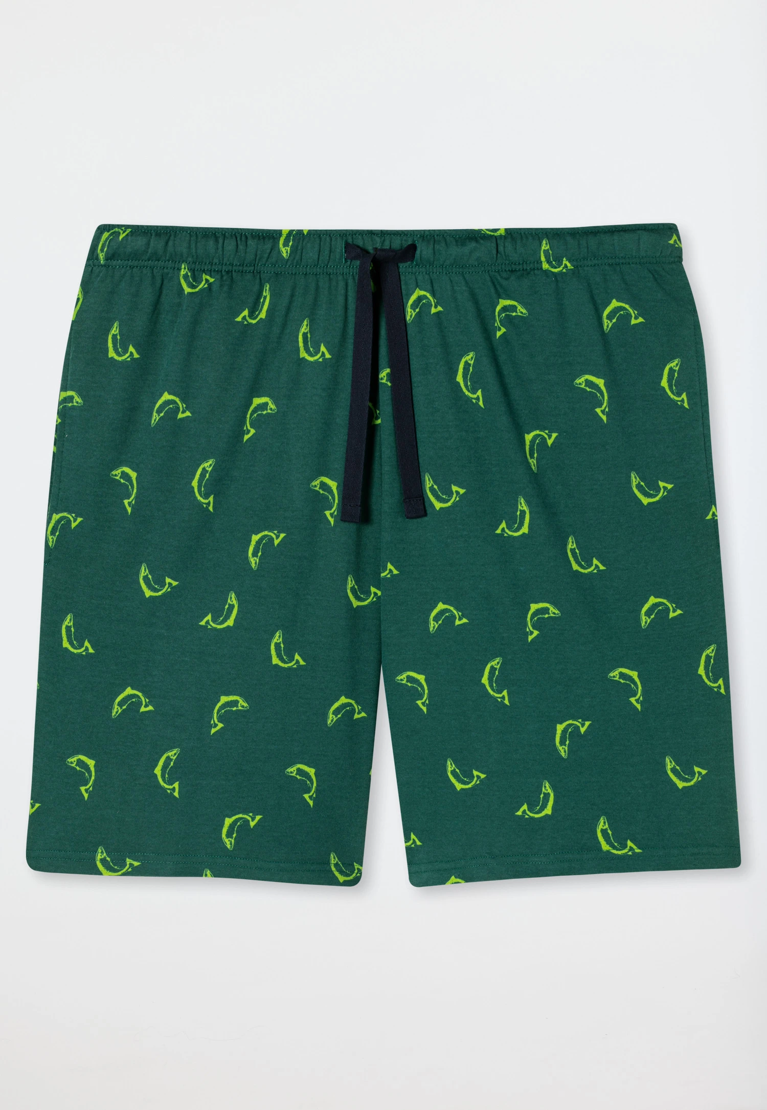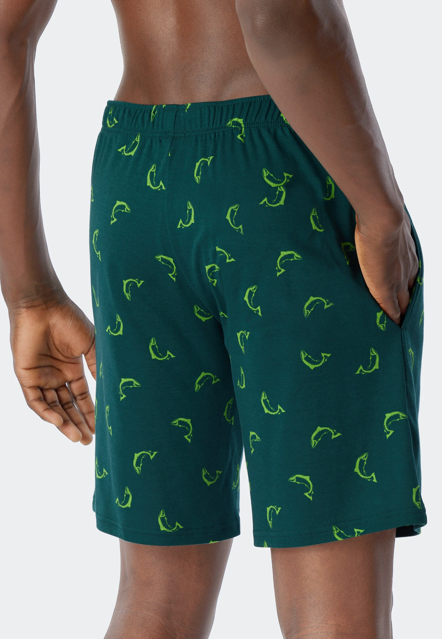 - men’s Bermuda shorts with a maritime fish print in dark green and lime green