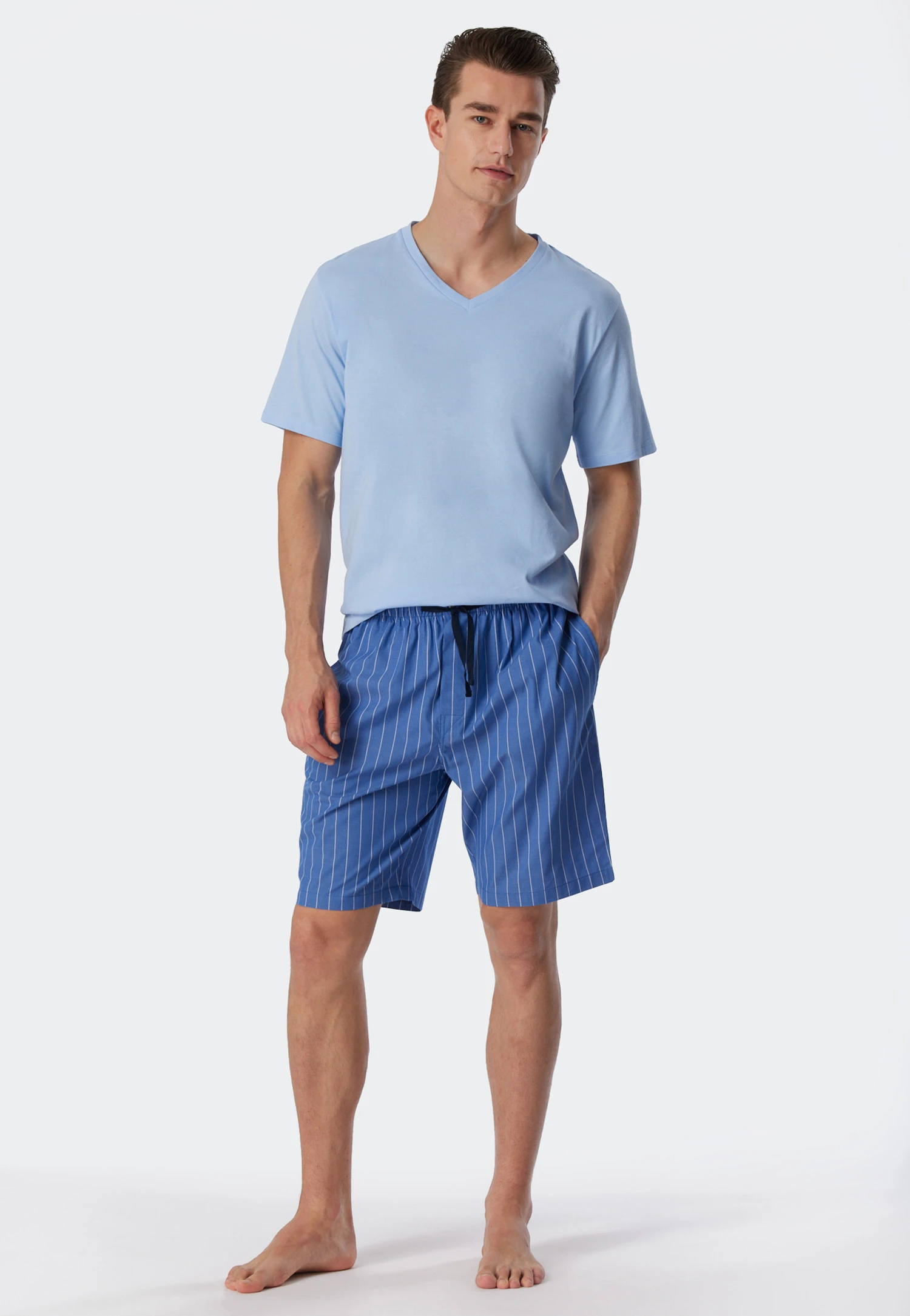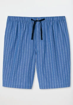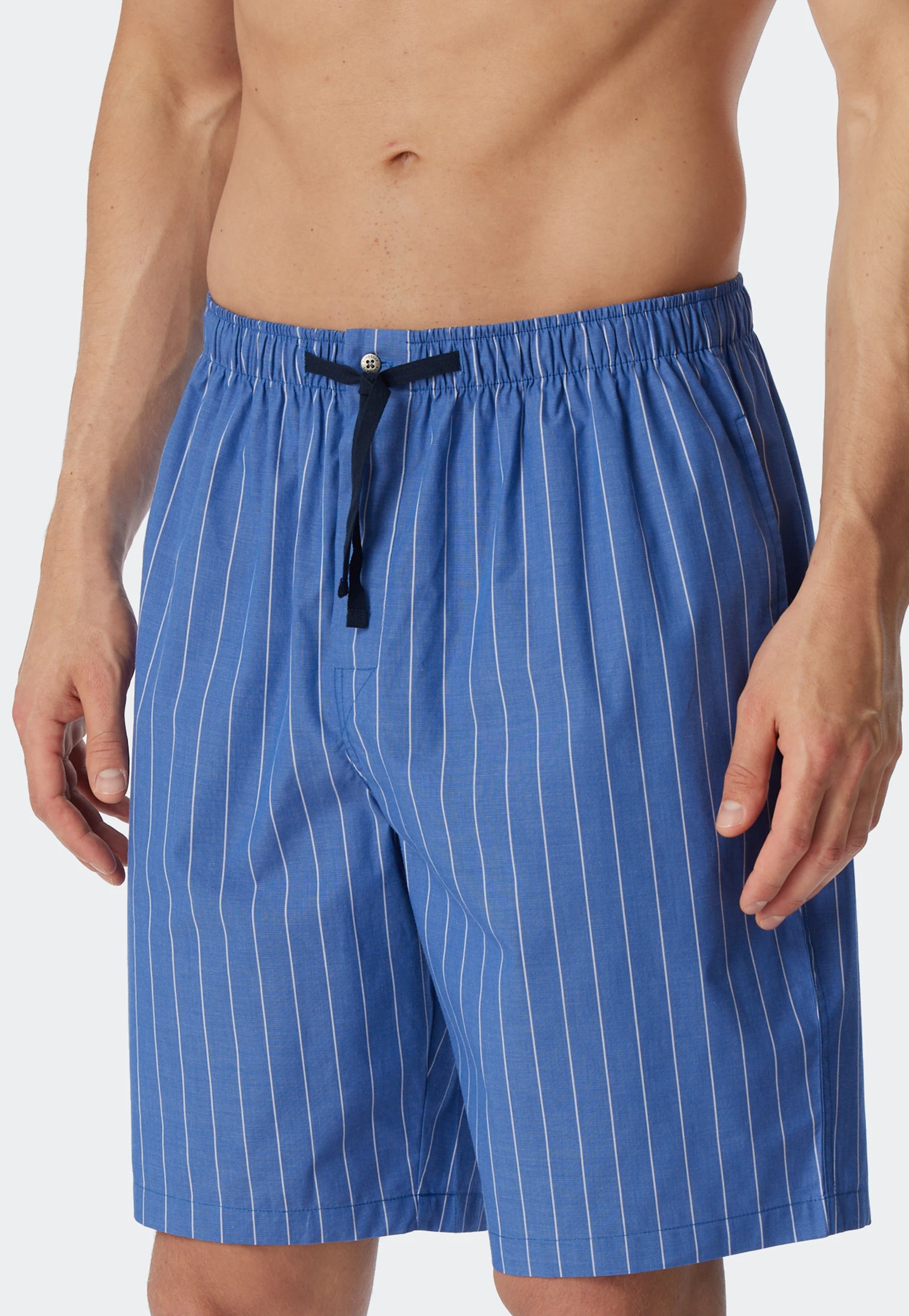 A fine, white pinstripe pattern makes these men’s blue Bermuda shorts a stylish partner for time spent relaxing! With their loose fit and 100% finely woven organic cotton, these pants are extremely comfortable and are equipped with practical side pockets. The dark blue drawstring on the elastic waistband and the functional button placket complete the masculine look. Ideal for relaxing days and nights in best SCHIESSER quality!