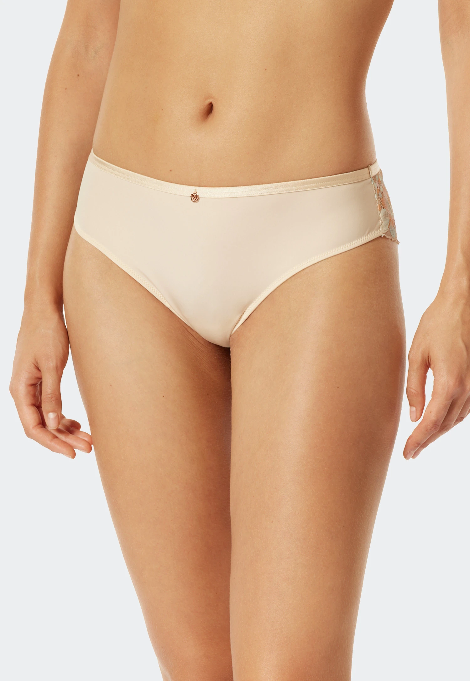 Refined and wonderfully feminine: these bikini briefs for women have that certain something! The back is made entirely of floral lace and lets your skin shine through. The sexy, tight cut makes the elegant look absolutely perfect. At the same time, this elegant undergarment with soft trim is wonderfully comfortable. The stretchy, silky shimmering material not only feels particularly soft: thanks to the high proportion of recycled material, it’s also sustainable. Lingerie in best SCHIESSER quality!