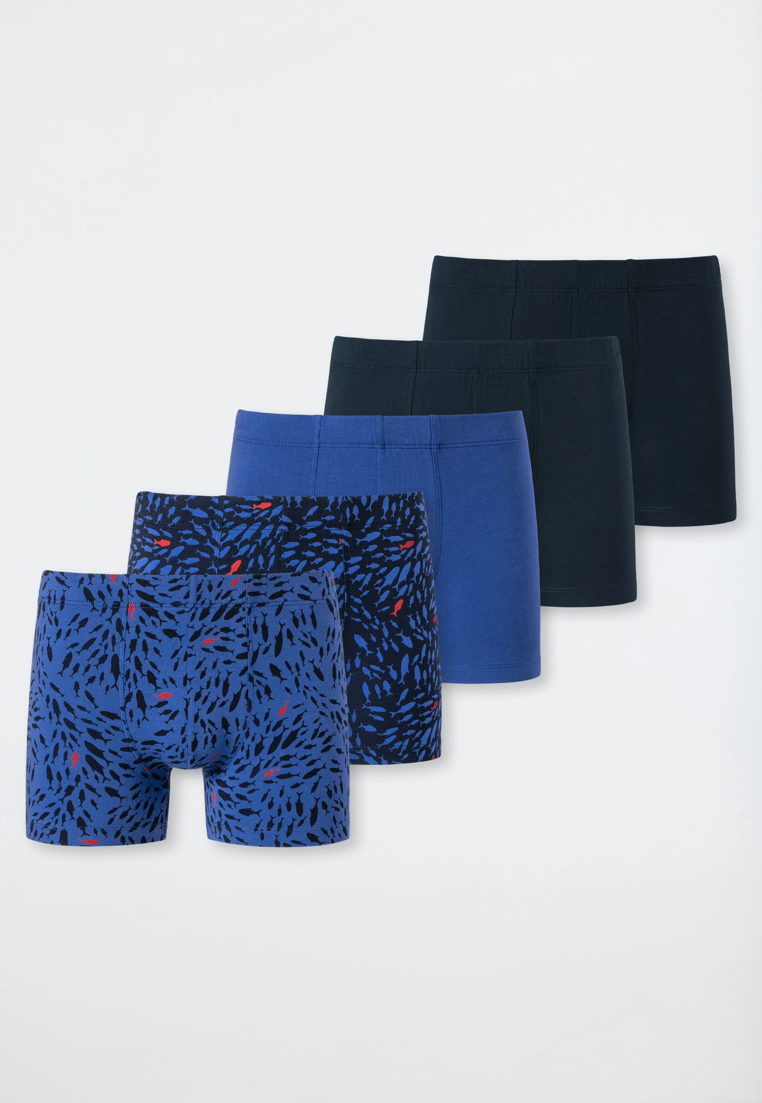 All your sea animal fans will be delighted with these summery boys’ boxer briefs in a practical 5-pack! No matter whether they feature cool fish in blue and red or a solid-color design in tones of maritime blue – this underwear is just a lot of fun. The stretchy single jersey made from skin-friendly organic cotton and the extra comfortable soft waistband sit perfectly against the body and ensure a comfortable fit. Slip them on and feel good in the best SCHIESSER quality!