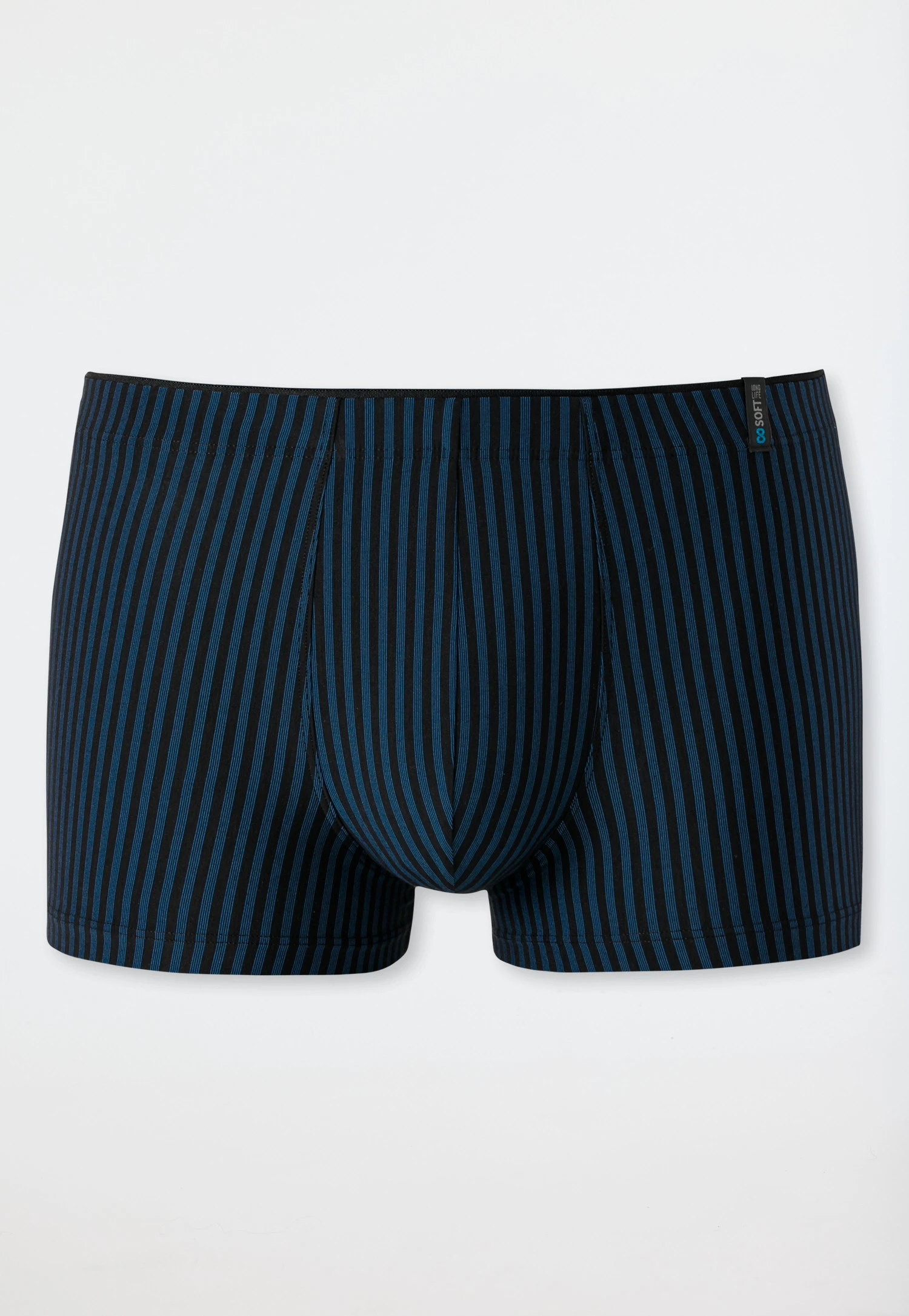 Innovative material and an optimal fit characterize these black-navy striped men’s boxer briefs from the SCHIESSER “Long Life Soft” line. The unique ReaLasting cotton finish promises an equally high ?quality at all times, even after many washes, and guarantees, thanks to the balanced elastane part, that the shorts remain form stable and provide an exact fit. A low-pilling basic for men, who appreciate underwear in the ?best shape!