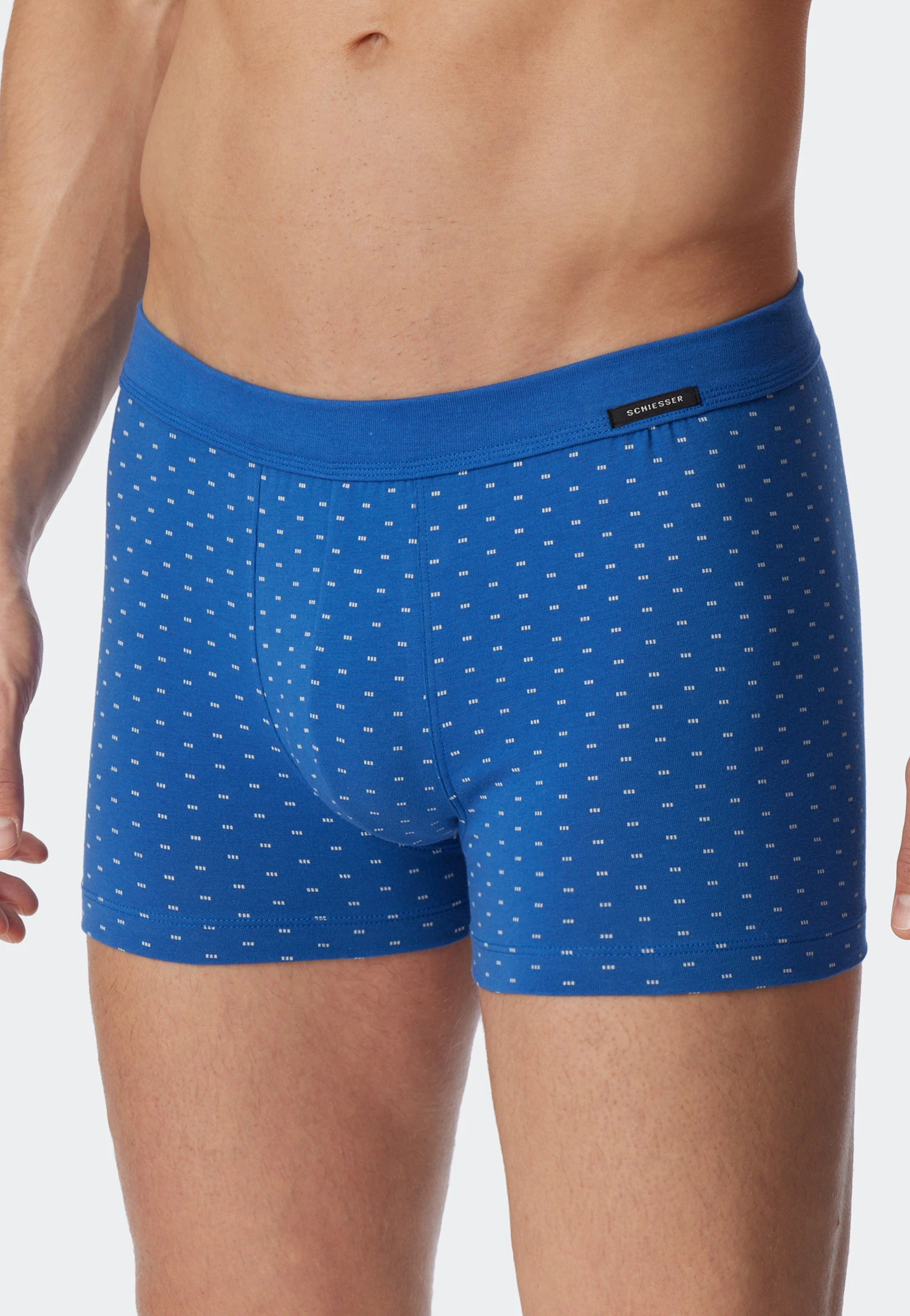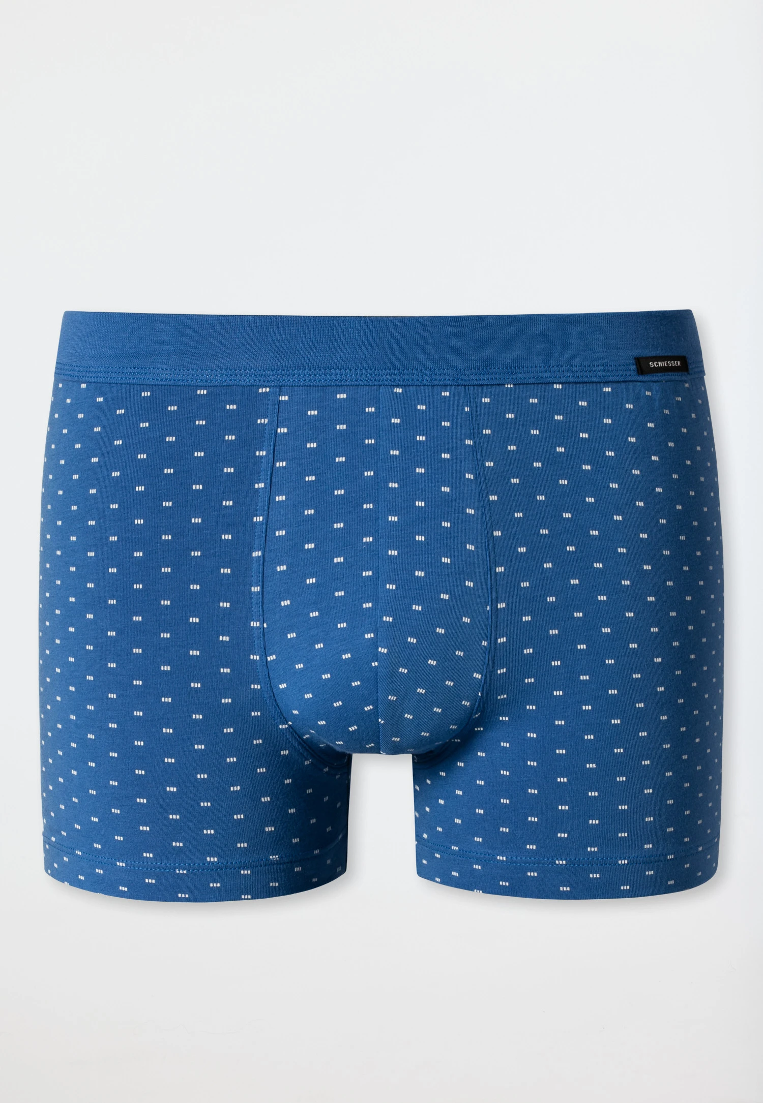 Don’t make any compromises and opt for well-fitting underwear with these men’s aqua blue boxer briefs. The high-quality blend of 95% organic cotton and 5% spandex guarantees a soft feel and pleasant elasticity. The color-coordinated woven elastic waistband ensures optimal support while the modern graphic design in black acts as a special visual accent. A masculine statement – in the best, tried and tested SCHIESSER quality, of course!