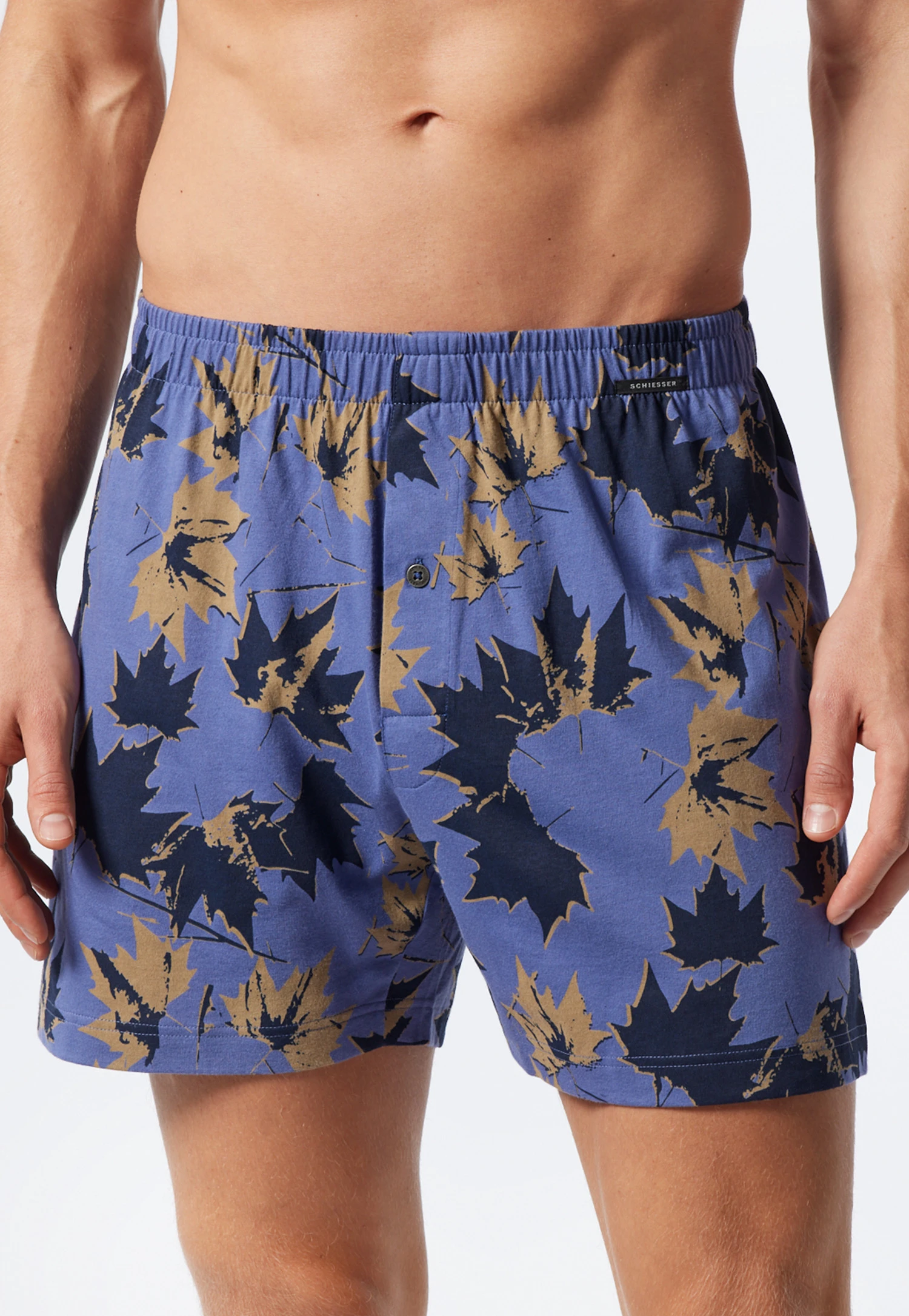 These men’s boxer shorts are the perfect duo for any day of the week: super classic in masculine dark blue or with an autumnal leaf motif on a gray-blue background the print is a real eye-catcher. Super soft single jersey made from 100% cotton makes this multi-pack extra skin-friendly. These boxer shorts also inspire with their comfortable waistband with functional button placket. A double pack in the best SCHIESSER quality for men who want to enjoy their daywear at all times!