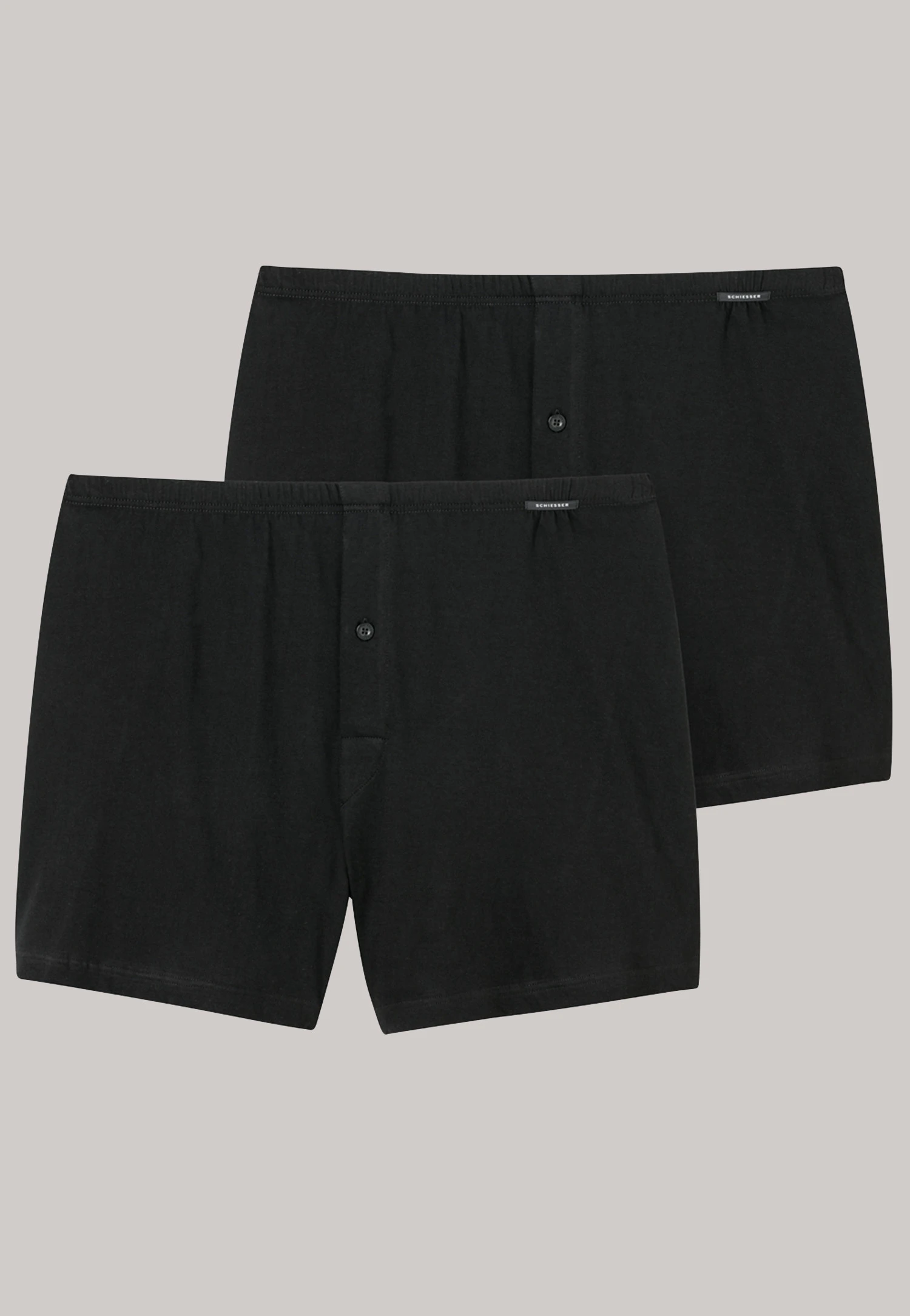 A casual look meets fine single jersey made of 100% cotton with these two men’s black boxer shorts. The button placket with one visible button adds a functional detail, while the elastic multi-needle waistband ensures maximum comfort and dimensional stability throughout the day. A masculine underwear double pack in the best SCHIESSER quality!
