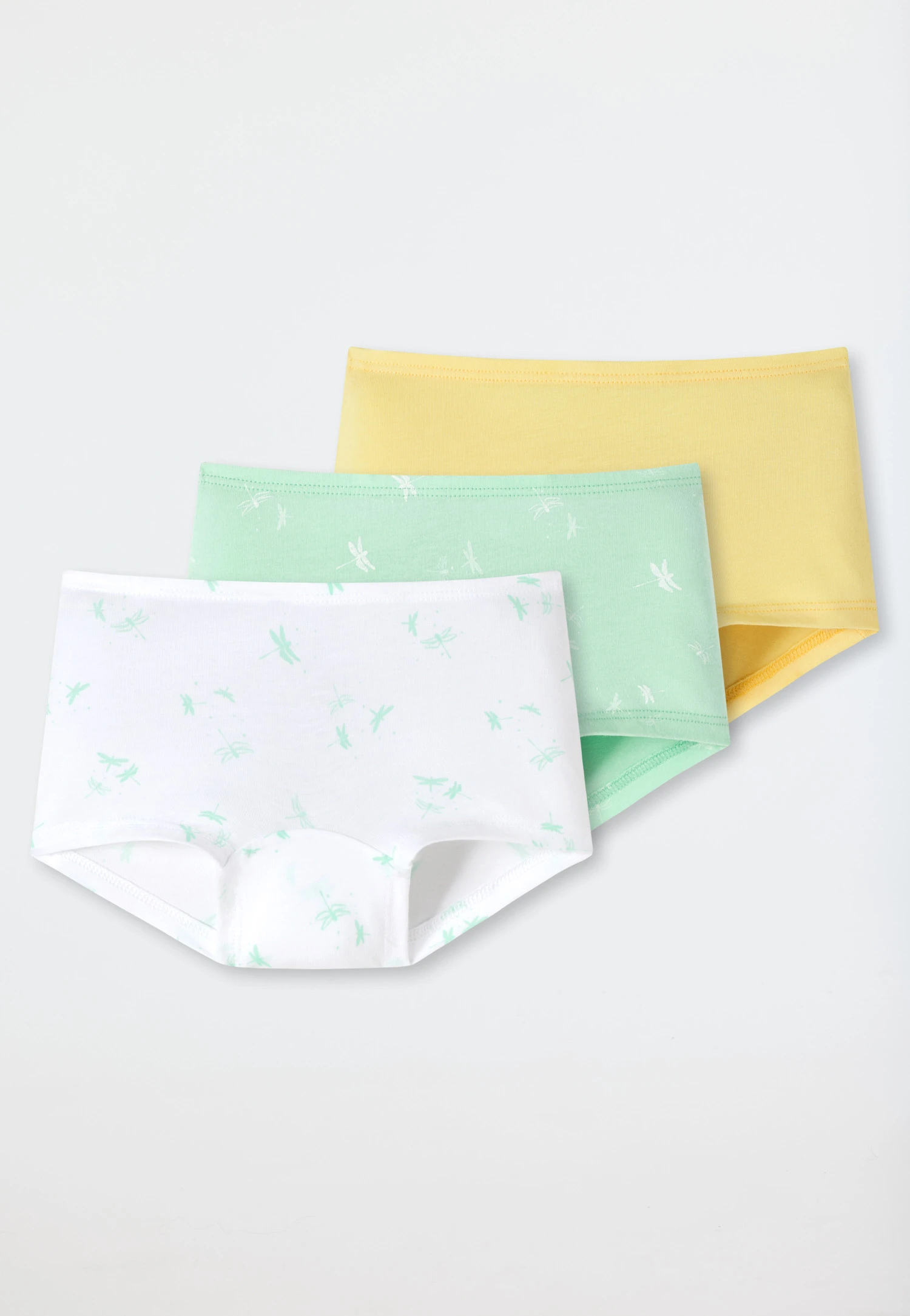 Summer joy in the best SCHIESSER quality! These boyshorts in a practical 3-pack will delight with plenty of naturalness. Your little treasures will feel totally comfortable in the high-quality single jersey material made from skin-friendly organic cotton. Whether in mint and white with allover dragonfly print or solid vanilla – this multi-pack is a magical eye-catcher. The comfortable soft waistband is wonderfully comfy and sits perfectly on the body at all times while playing and romping around.
