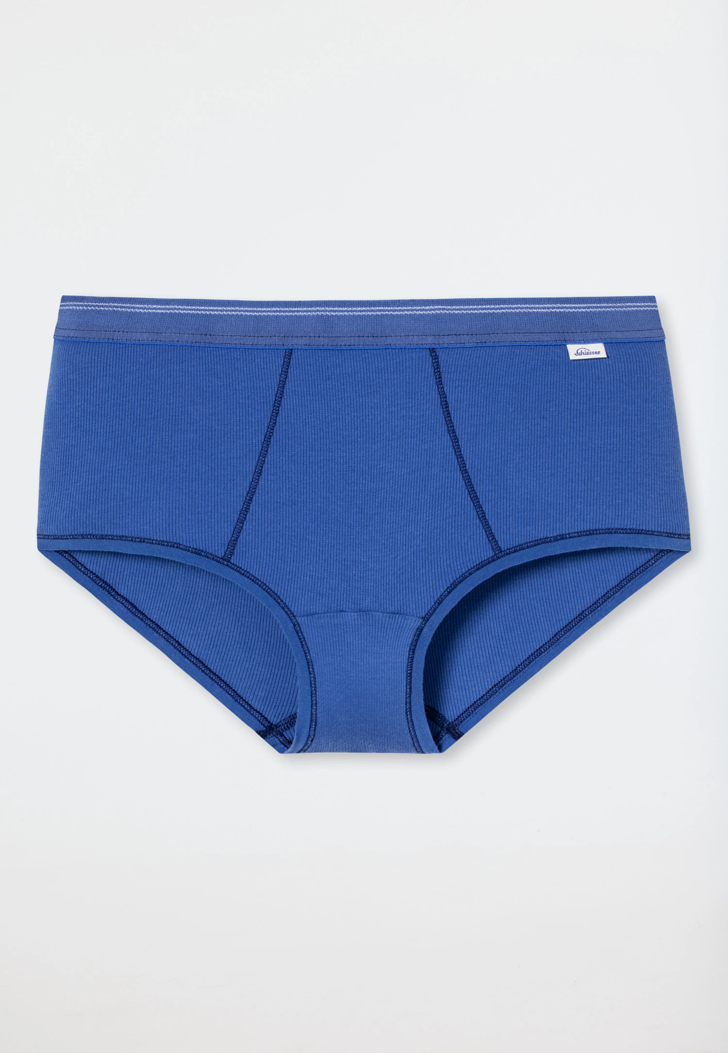 - woven elastic waistband with white decorative stripes and traditional woven Schiesser logo