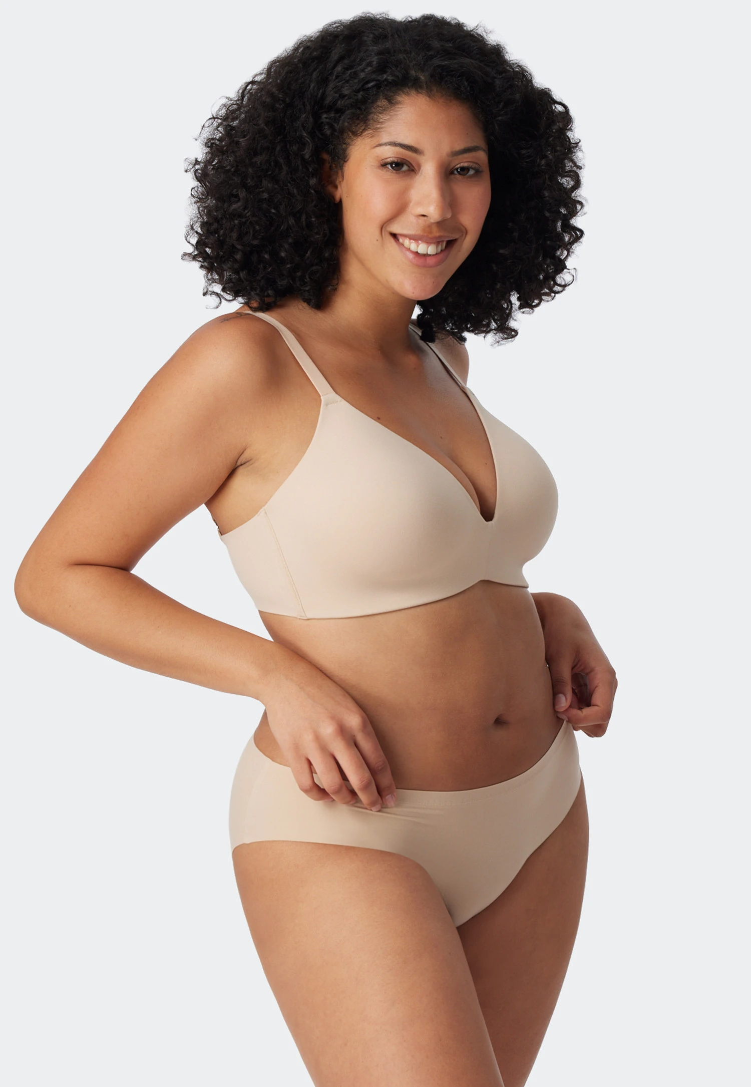 This super-soft bra has what it takes to become your new favourite! The innovative bra from the new SCHIESSER series “Invisible Soft” feels like a second skin. With its laser-cut finishes and bonded side seams, it is invisible even under close-fitting clothing. The padded cups, side supports and adjustable straps provide a perfect hold. The secret of comfort is elastic, peached micro fabric that is particularly soft to the touch. The finest SCHIESSER quality!