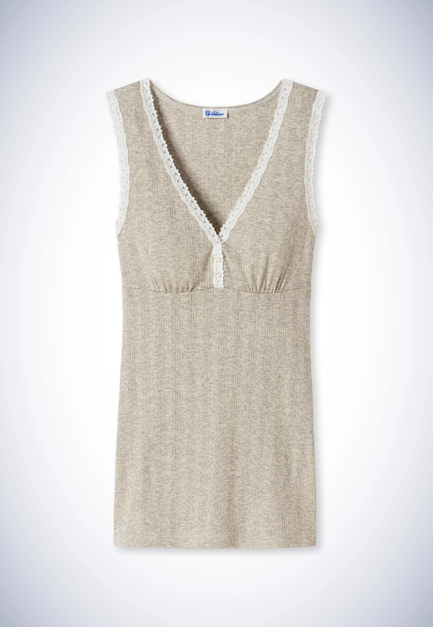 Agathe – they also call me “the lovely one”, because I am a top that emphasizes your femininity. My trademark is the flowered lace ribbon along the collar and, of course, the two mother-of-pearl buttons on the neckline. My sweet charm in traditional open-worked fine rib is noticeable. Thanks to cotton and a touch of elastane I gently caress your skin with incomparable softness – as underwear or even with jeans, whichever you prefer.