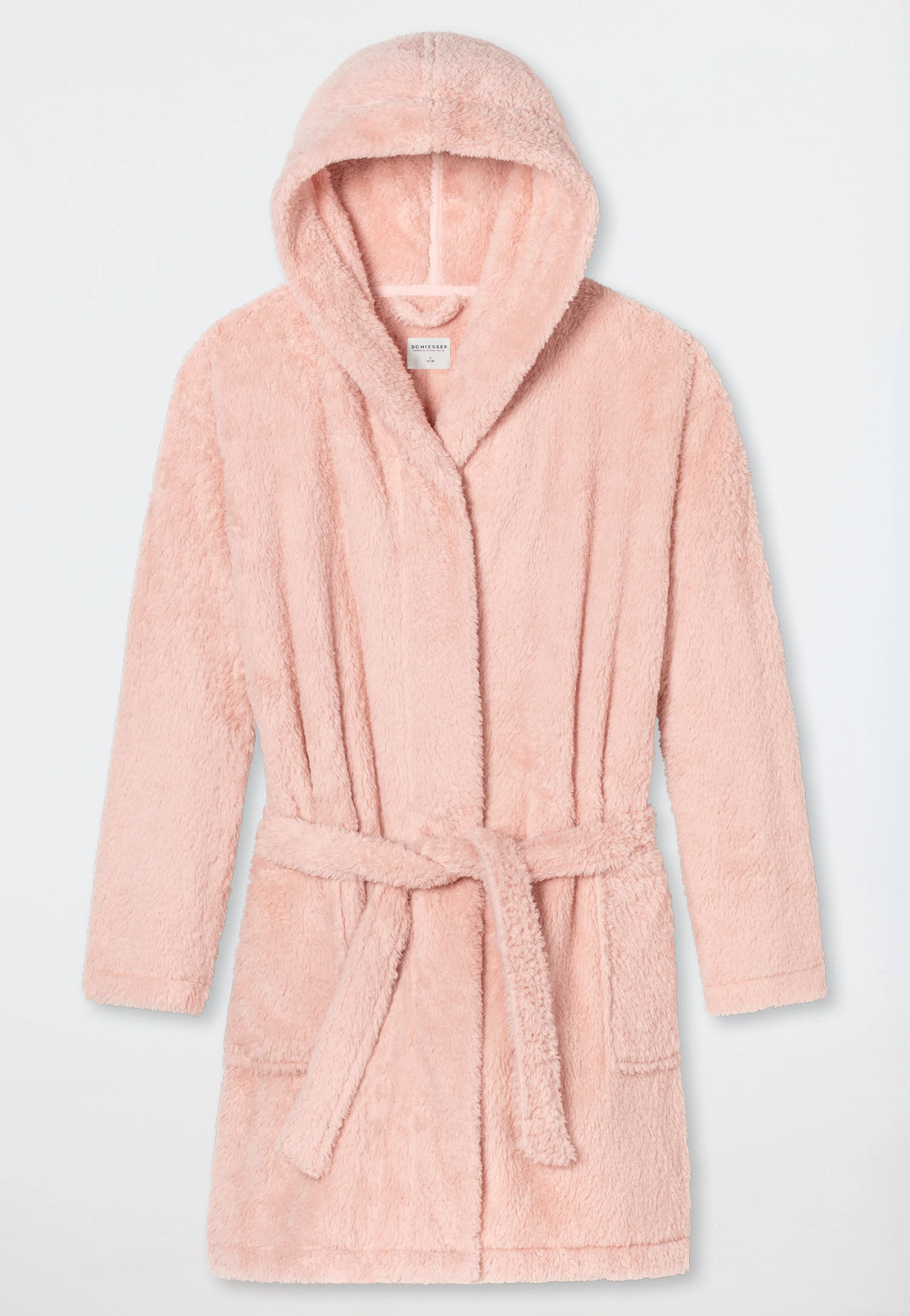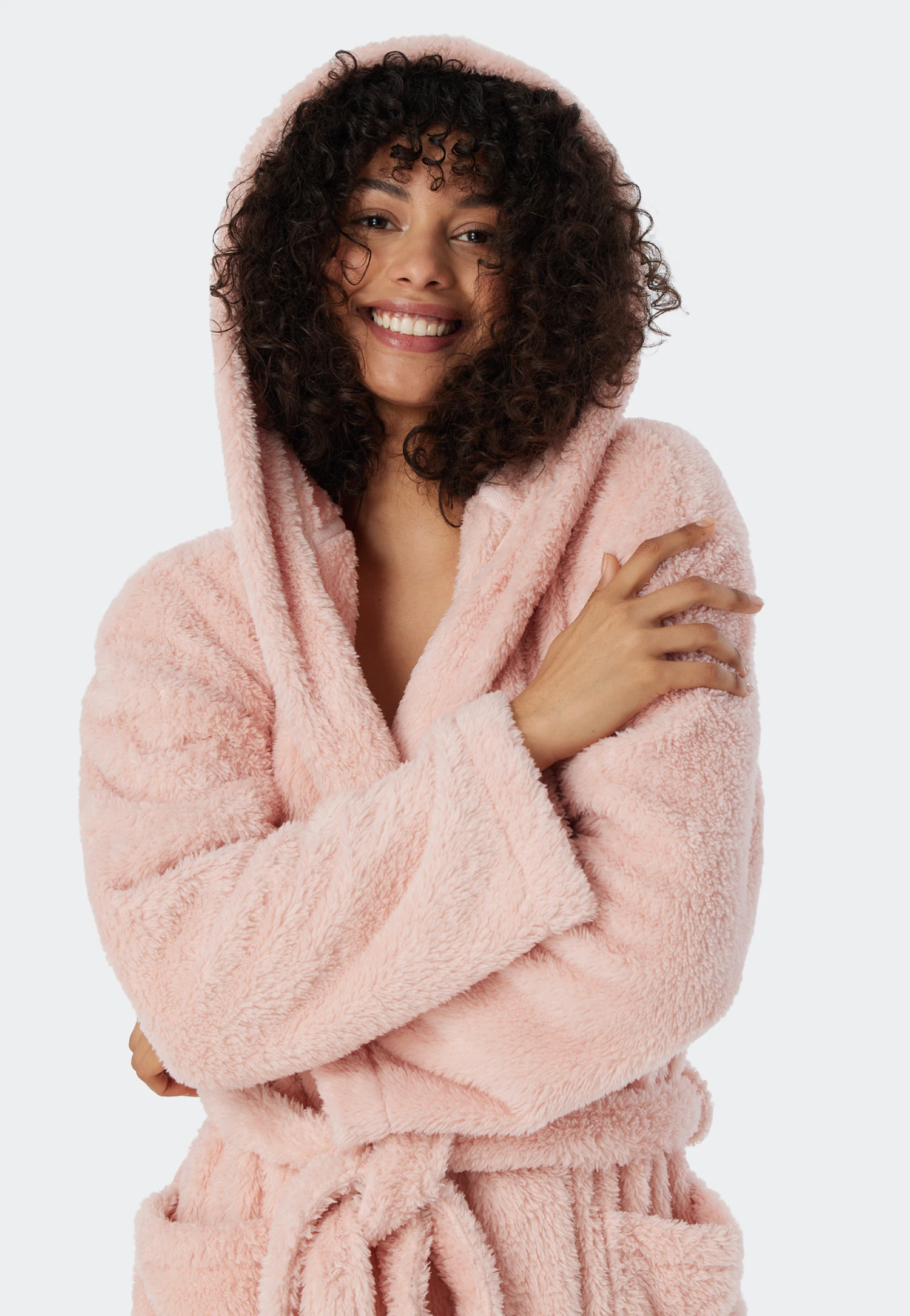 May we introduce: our cuddly darling in a stylish short version! This dressing gown is simply perfect for women who love to feel warm and cozy. Because with its super fluffy, lightweight teddy fleece, this short robe feels like a gentle hug. The large hood, adjustable sash and patch pockets act as charming details. All that’s left to add is the very best, sustainable SCHIESSER quality and you’re ready to enjoy moments of pure happiness at home!