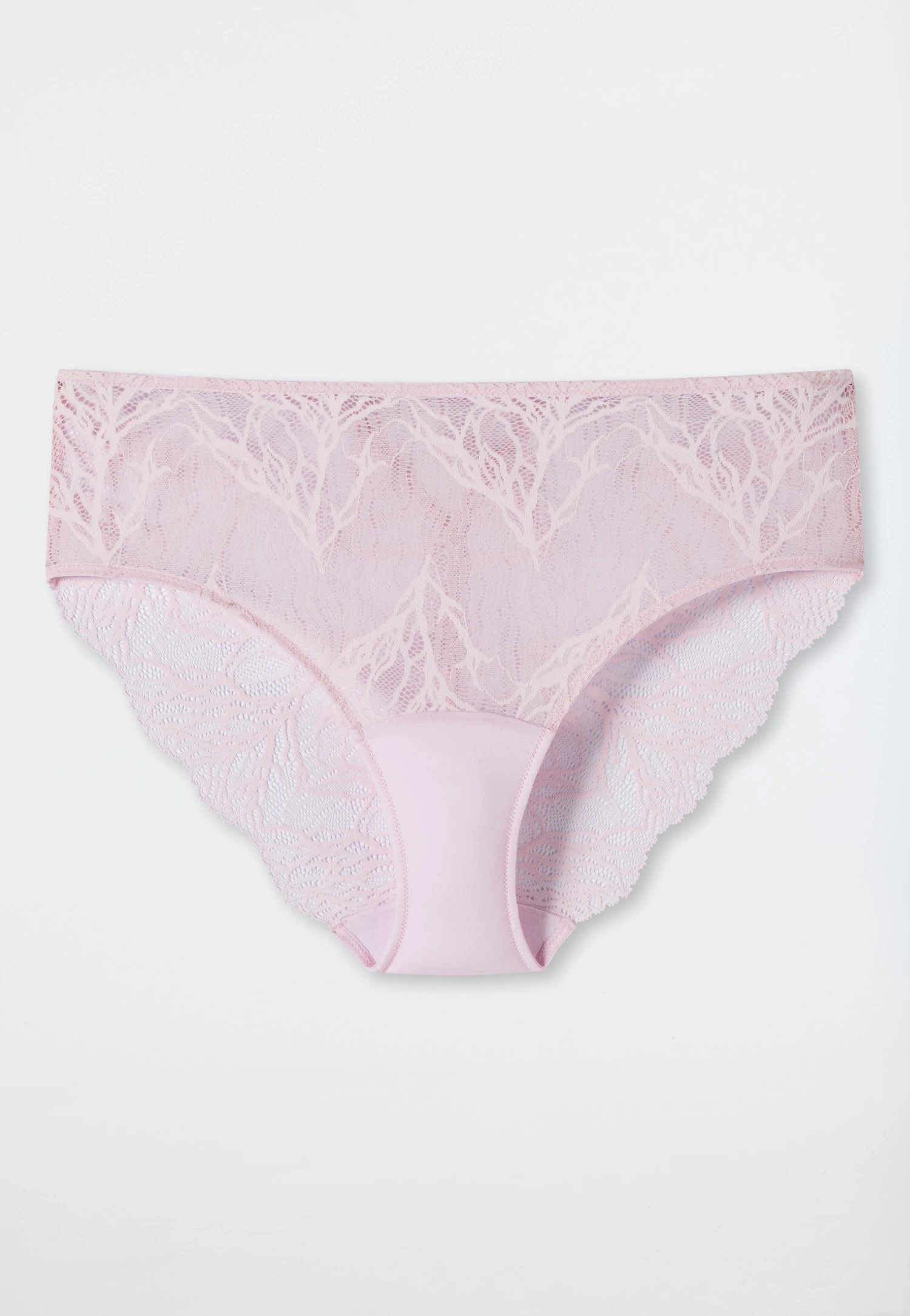 These pale pink high-waisted panties for women are elegant and wonderfully feminine! With their trendy high-cut waist, they simply look great. Fine, transparent lace at the front and back gives them sophistication. The stretchy, vertical seam at the back and the soft edges on the hem and the front leg openings ensure a comfortable fit. The fine microfiber material with spandex is also soft at the gusset. Best SCHIESSER quality!