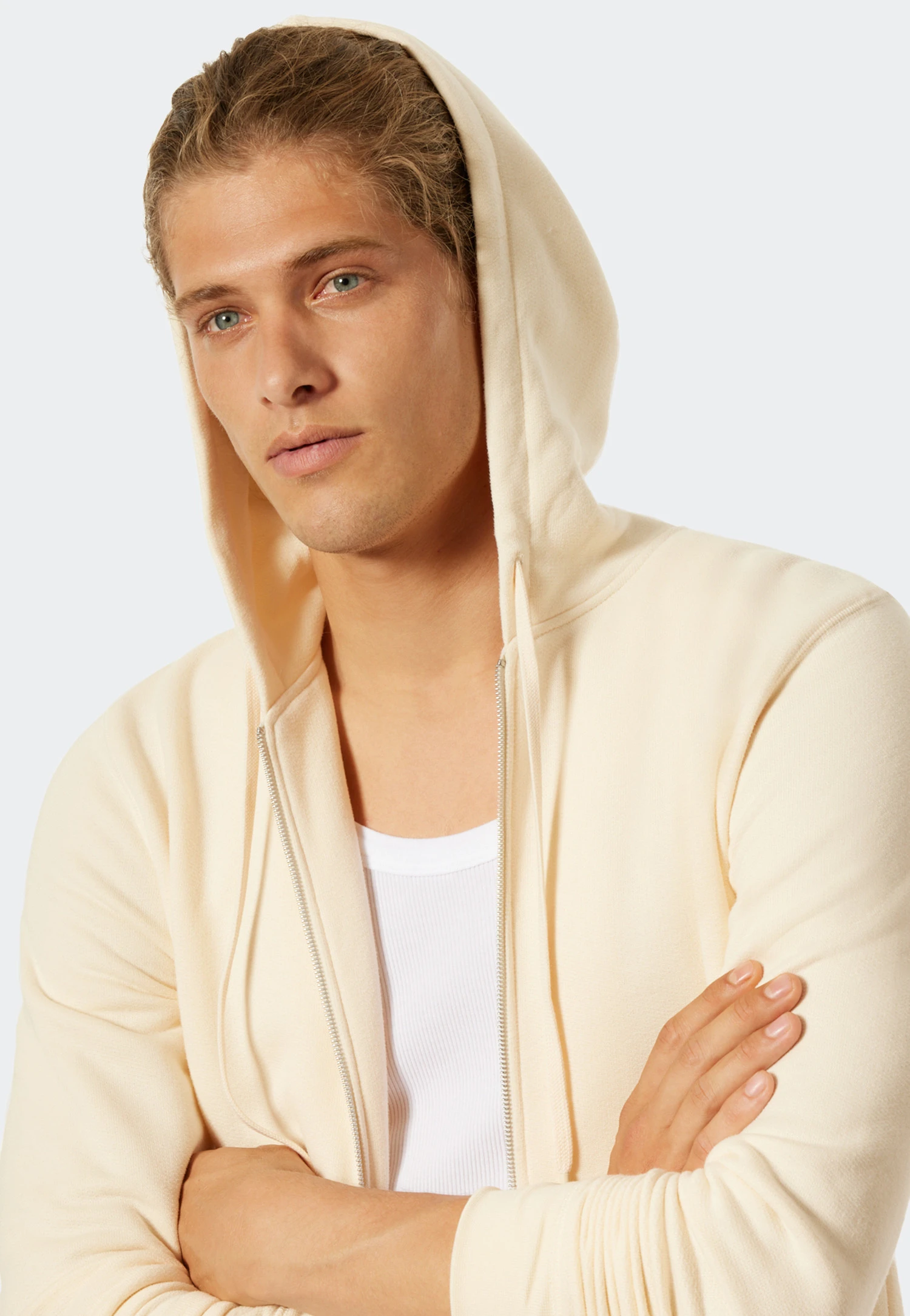 I’m Vincent, a sporty hoodie. If you like it uncomplicated, you’ve come to the right place. The hood with high-quality drawstring, silver zipper and pockets are signs of my casual style. The wide trim on the hem and sleeves are also smart details. My highlight: the sweat fabric, non-slip on the outside and soft on the inside. Made from organic cotton, it is not only sustainable, but also free from harmful substances. Together we make the perfect team – for a long time to come.