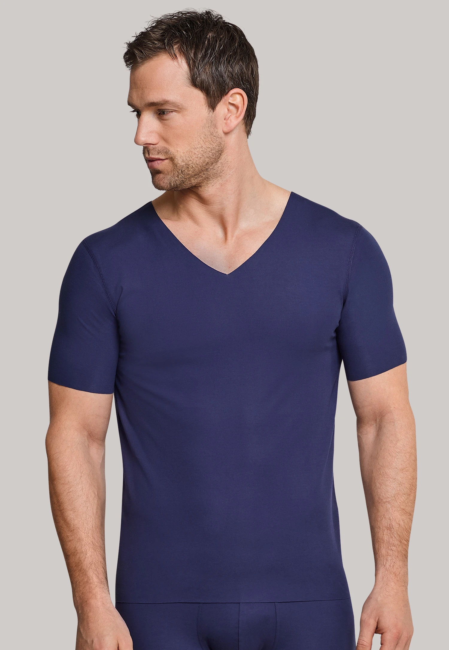 Barely felt, barely seen – men who appreciate seamless, state-of-the-art underwear have come to the right place with this short-sleeved shirt! With innovative laser-cut technology, this shirt has ultra-precise finishes, and feels like a second skin with exceptionally lightweight interlock fabric. The deep V-neck is ideal under any dress shirt and makes this T-shirt the perfect underwear complement to any stylish outfit.