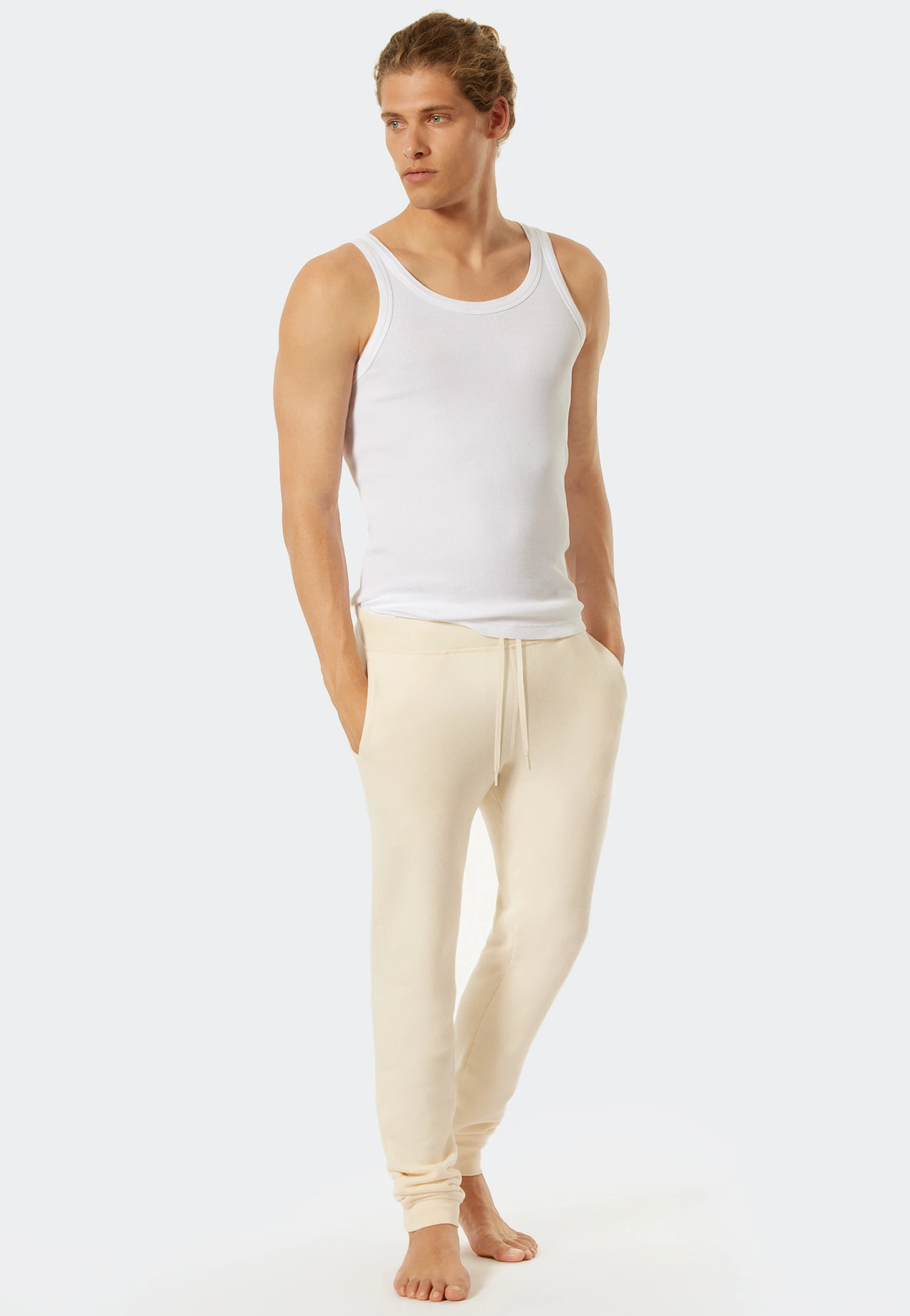 - wide elastic waistband with practical drawstring and ribbed leg ends
