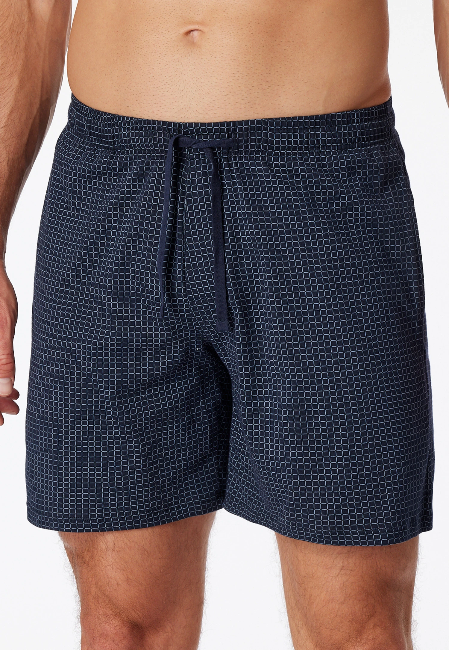 Whether it’s relaxing or sleeping, these dark blue and light blue checkered long boxer shorts are always the right choice! These loose men’s shorts from the popular “Mix & Relax” line win you over with their soft jersey material made of 100% cotton and are equipped with side pockets and a functional button placket. The dark blue drawstring at the elastic waistband is another practical detail. A relaxing basic in the best SCHIESSER quality!