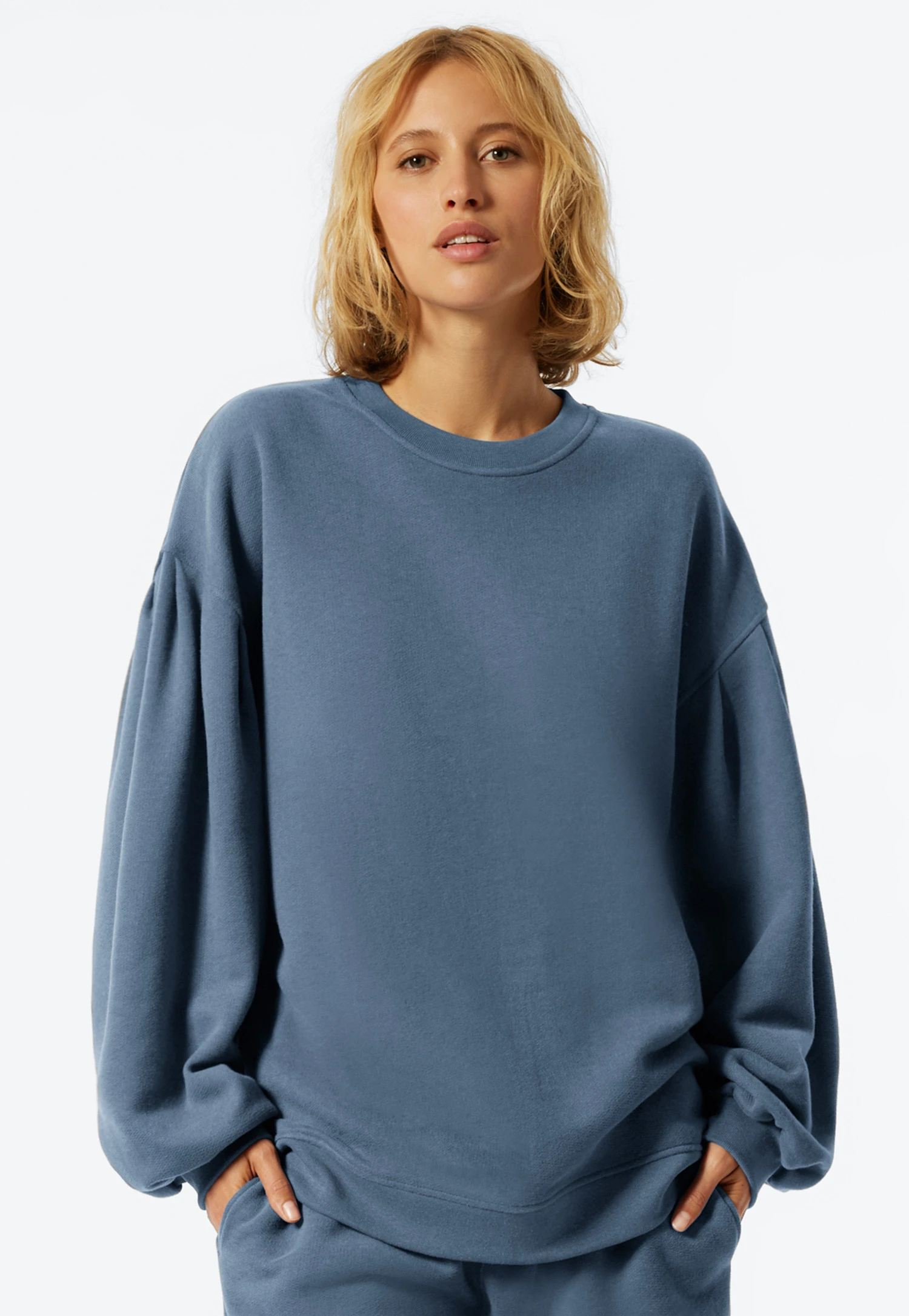 I’m Lena, a sweater like no other. With my loose cut with oversized shoulders, I simply look casual. The wide sleeves with decorative pleats and the super comfortable cuffs underline my look. With my heavyweight sweat fabric – non-slip on the outside, soft on the inside – you’ll feel secure. This is ensured by my high-quality material: sustainable, skin-friendly organic cotton with soft lyocell. I’m special – just like you.