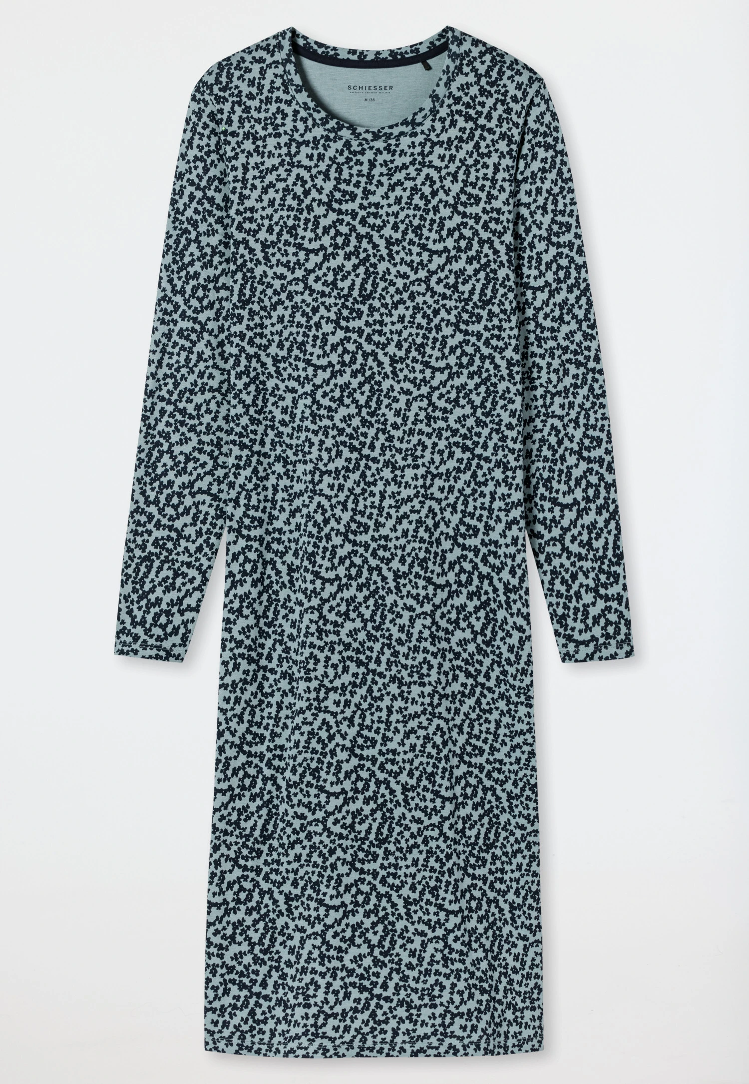 - Dark blue long-sleeved sleep shirt for women with a delicate floral print