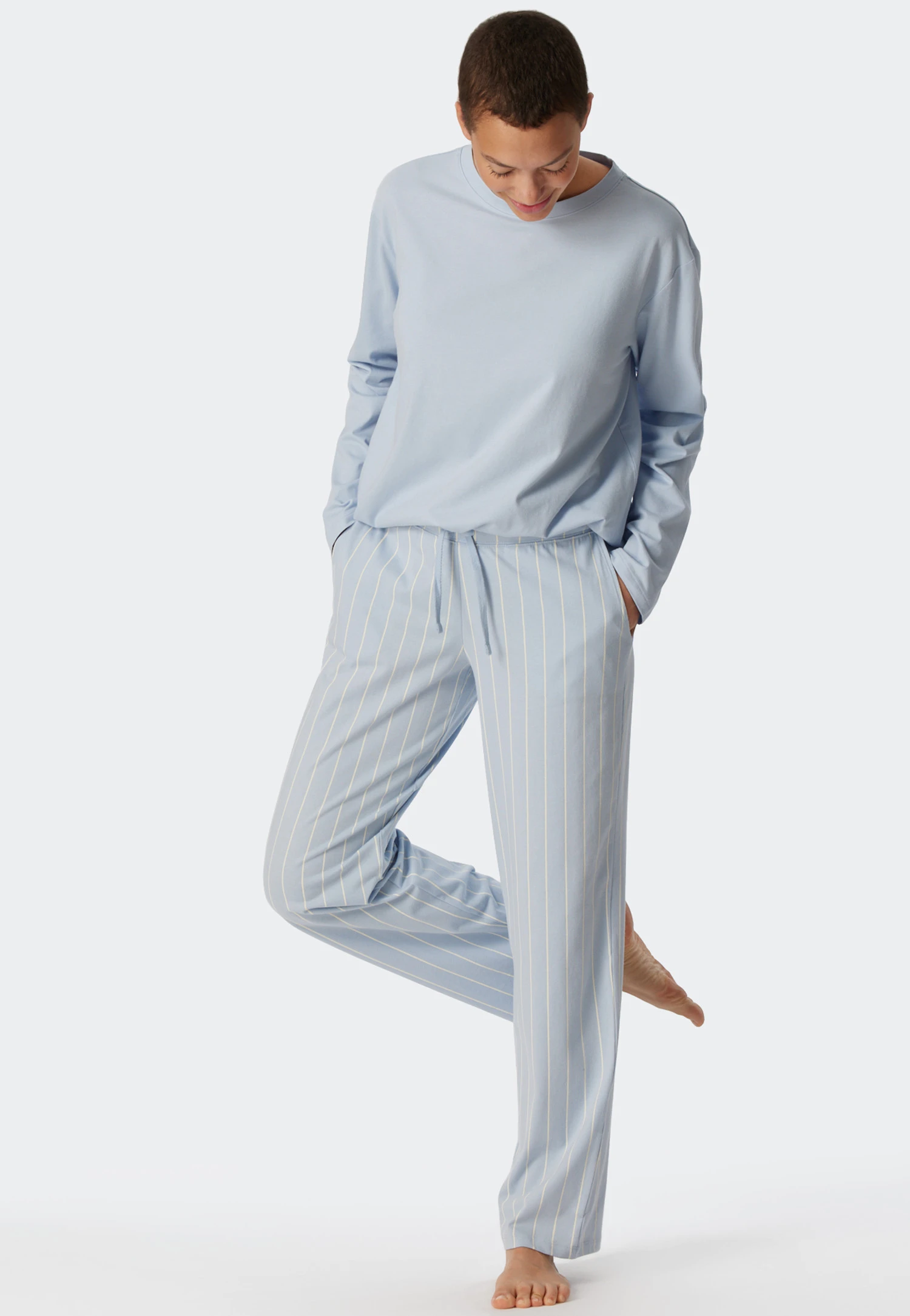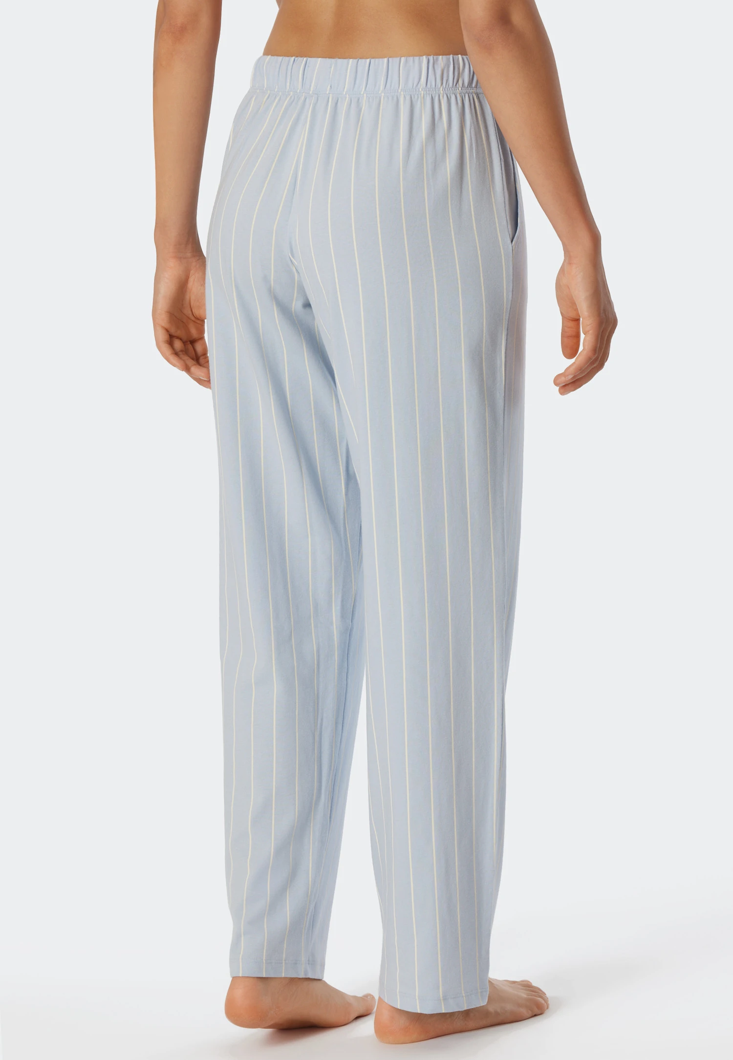 A pretty, white striped pattern turns these women’s long air-colored pants into a charming eye-catcher. The drawstring and side pockets make for practical details. All that’s missing is the soft jersey fabric and you’re ready to mix and relax! In the best SCHIESSER quality, of course!