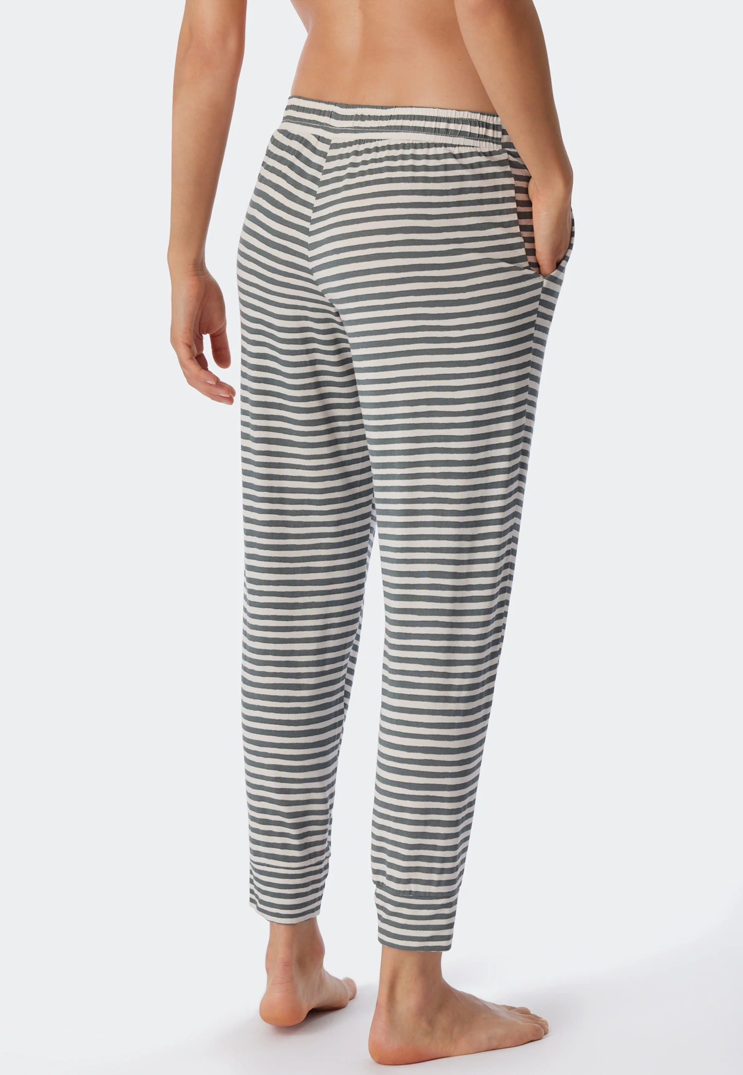 This basic is a must-have in any wardrobe! The long pants for women just look great, with their simple style and side pockets. The wide, stretchy waistband with adjustable satin drawstring and the wide leg openings promise comfort. Jersey made of soft, flowing modal with a touch of spandex just makes you feel good. The natural fiber is particularly soft, breathable and easy to care for. Best SCHIESSER quality for mixing and relaxing!