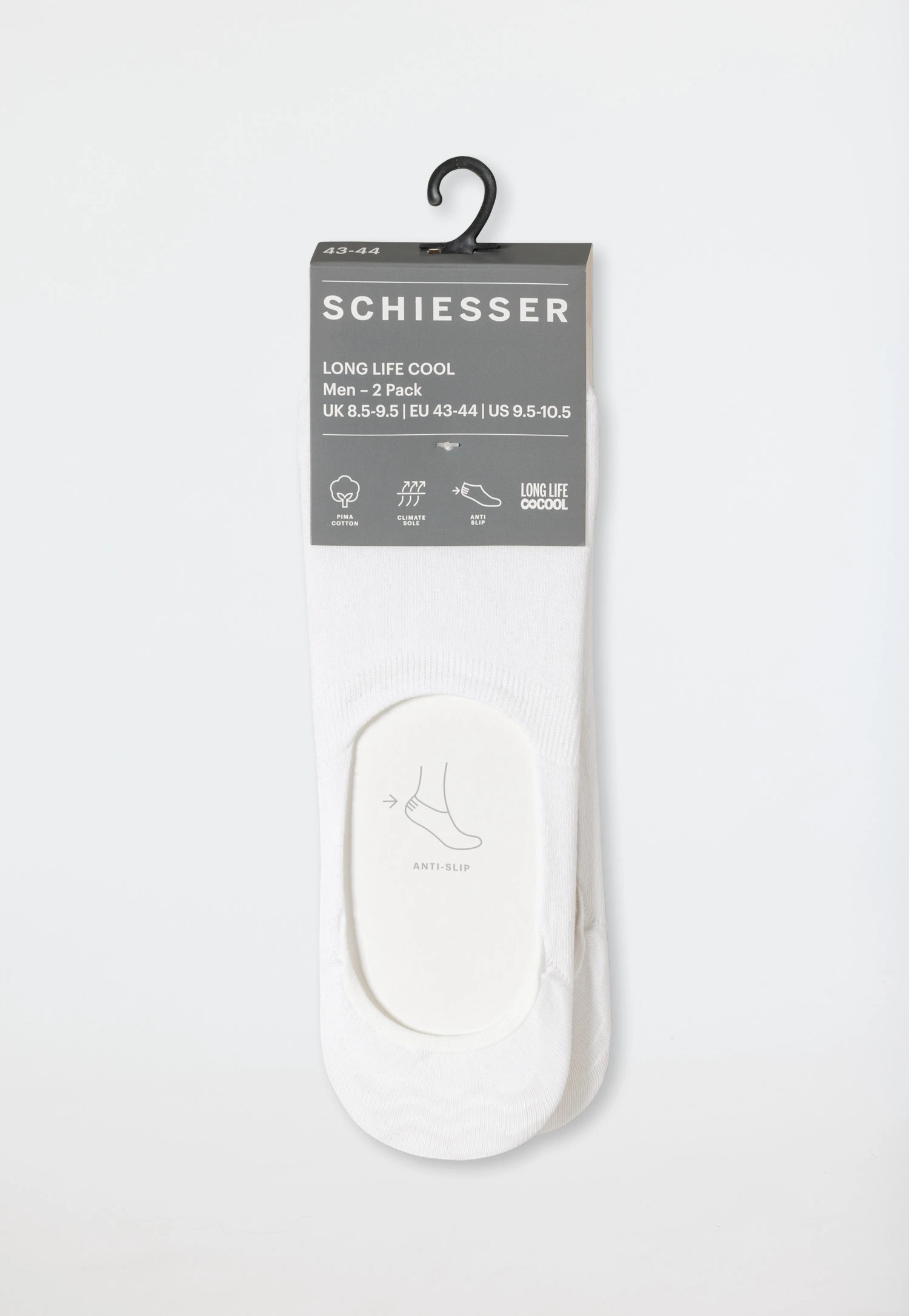 With these men’s socks in a double pack, wearers keep a cool head and cool feet. These low cut socks are made of high-quality Pima cotton and have Long Life finishing, guaranteeing a fresh and dry skin feeling at any temperature. The integrated ventilation zones ensure that extra coolness. In addition, thanks to silicone strips with an anti-slip effect, the socks sit reliably on the foot from morning to night. An unbeatable duo in best SCHIESSER quality!