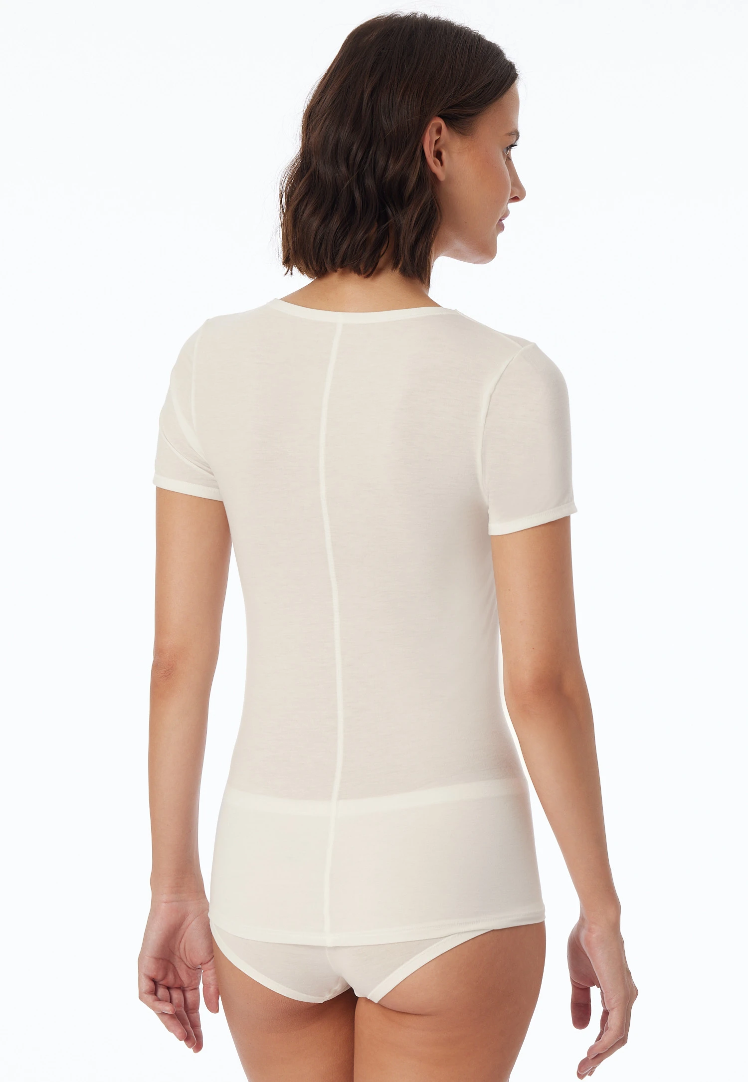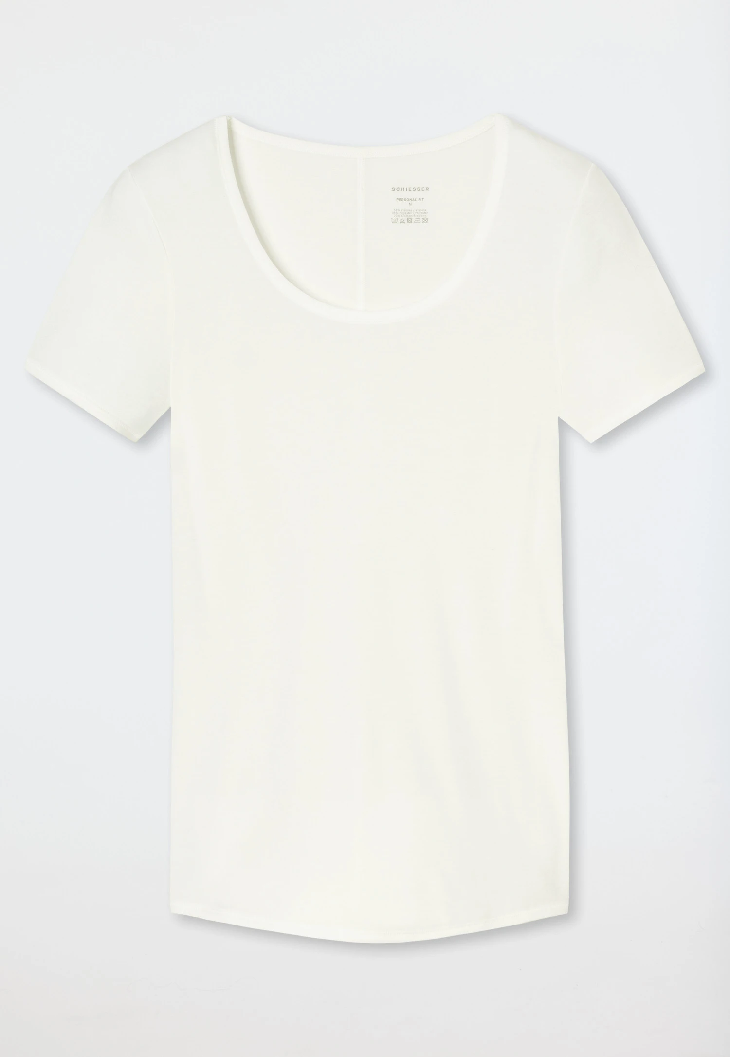 Far more than a simple basic: This natural white? short-sleeved shirt for women from the SCHIESSER line “Personal Fit” is a real allrounder! Breathable, moisture-regulating, and stable in shape, this shirt ensnares the skin in super elastic single jersey with a silky gloss while harmoniously going along with each movement like a second skin.? A wonderfully comfortable crew neck shirt, which convinces from the first moment on with its best, innovative SCHIESSER quality!