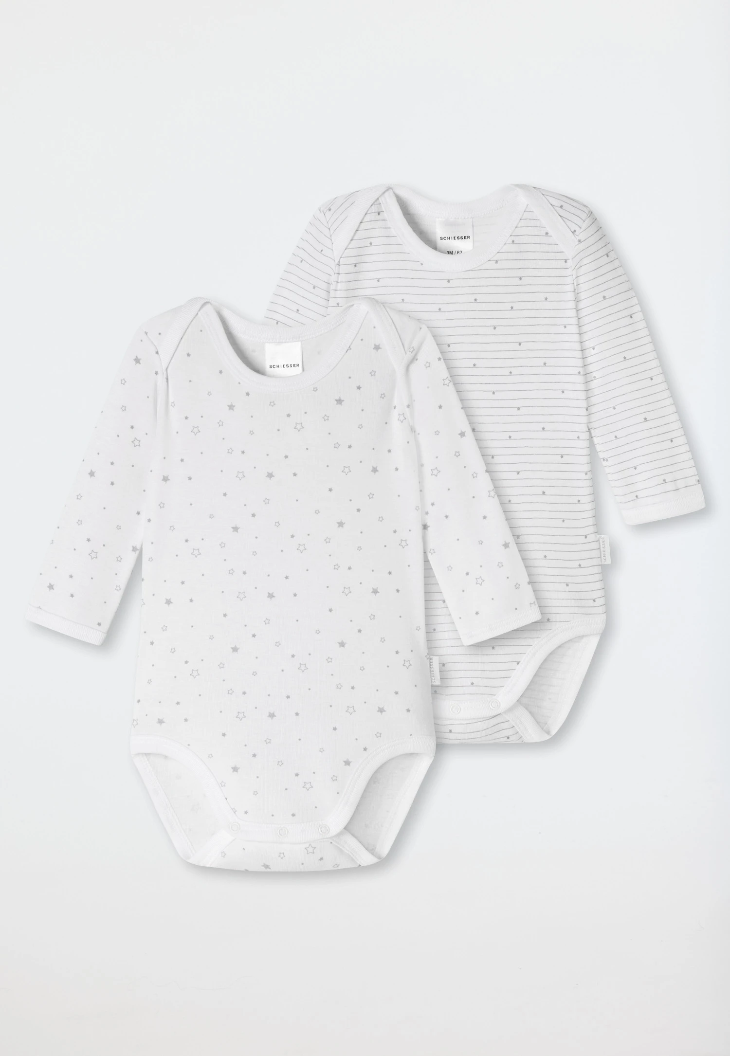 - white, printed long-sleeved onesies unisex in a practical double pack