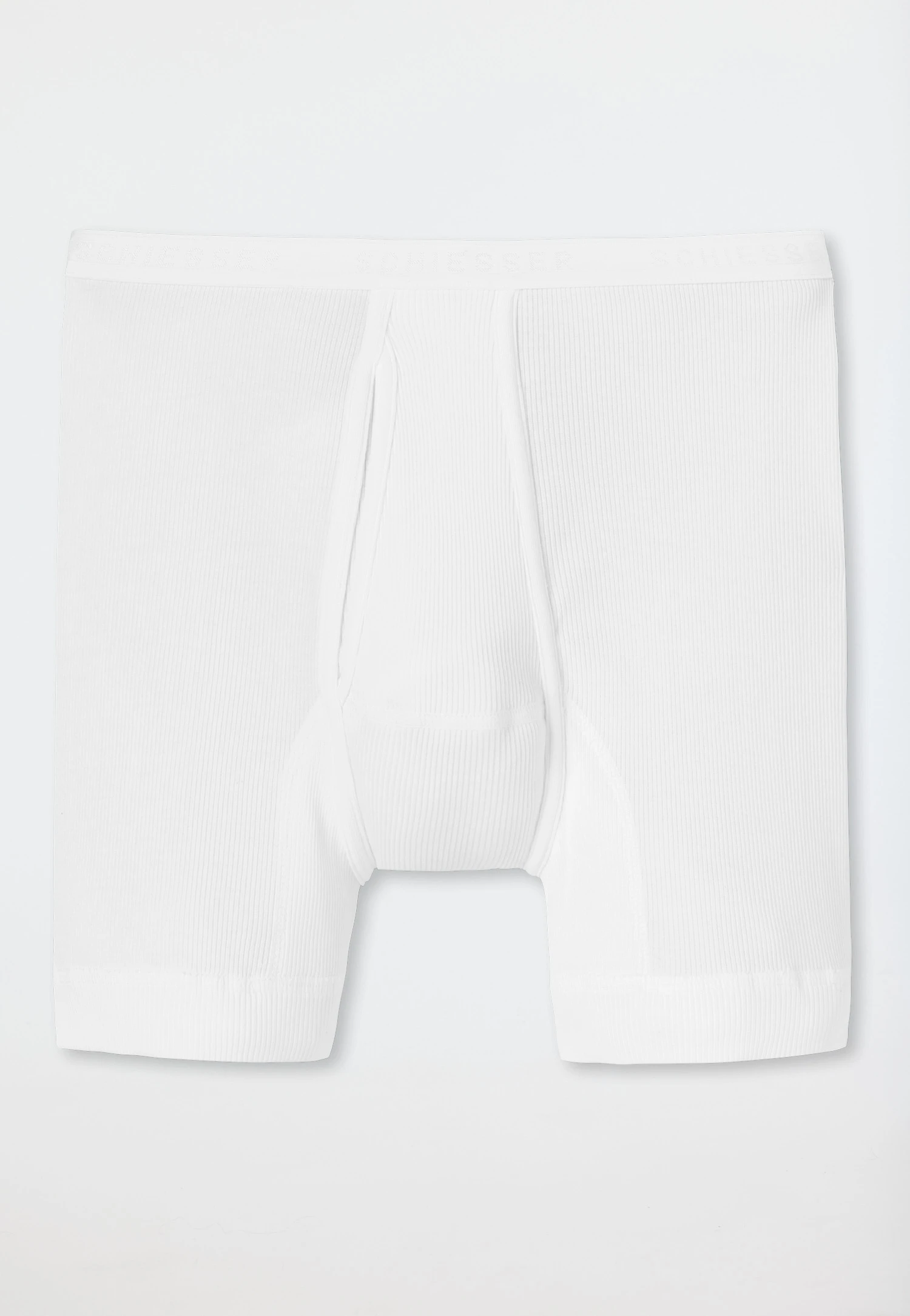 Double rib underwear for men with fly: A high wearing comfort and proven best SCHIESSER quality characterise these short, white men’s underpants from the “Original Classics” line. 100% 2-ply cotton feels beautifully soft to wear on the skin and stays in top condition even after washes at 95°C and dryer treatment. A pair of underpants with a high stability of shape made of especially durable material.