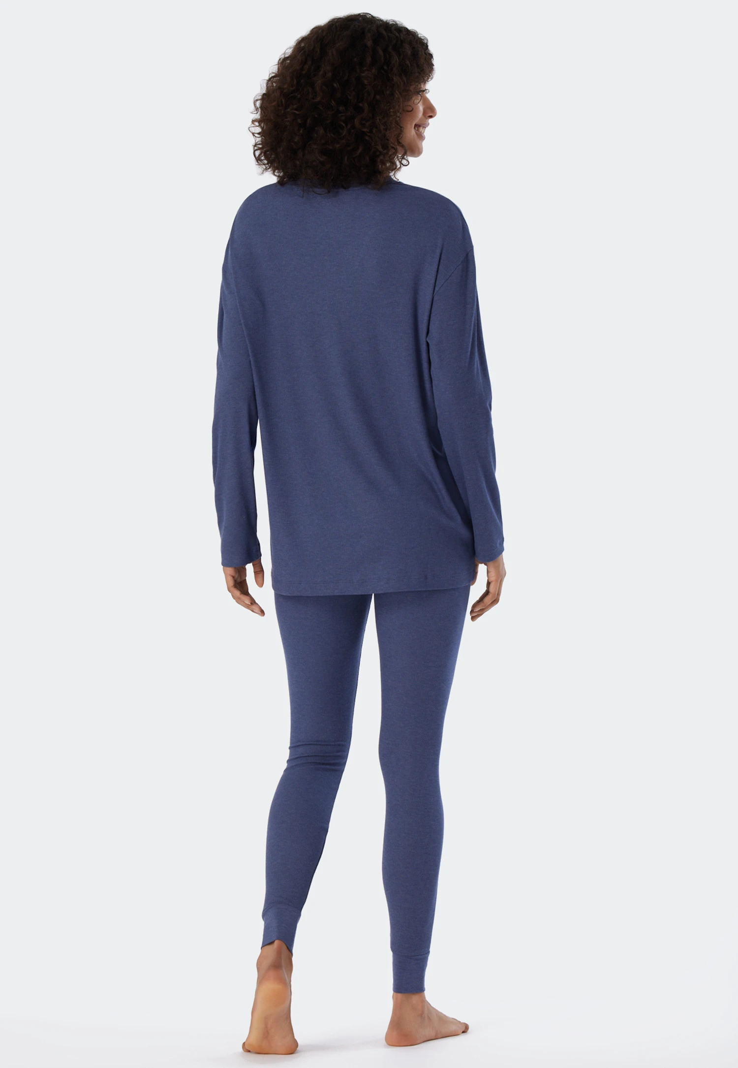 High-quality and soft: These long women’s pajamas caress your body so softly that you won’t want to take them off! The stretchy double rib made from breathable modal ensures a sense of pure well-being. The finely shimmering material impresses with its pleasant feel and high elasticity. The top features a smoothly edged V-neck and a modern silhouette. The long leggings also fit perfectly thanks to their stretchy waistband and wide cuffed finishes on the legs. Best SCHIESSER quality!