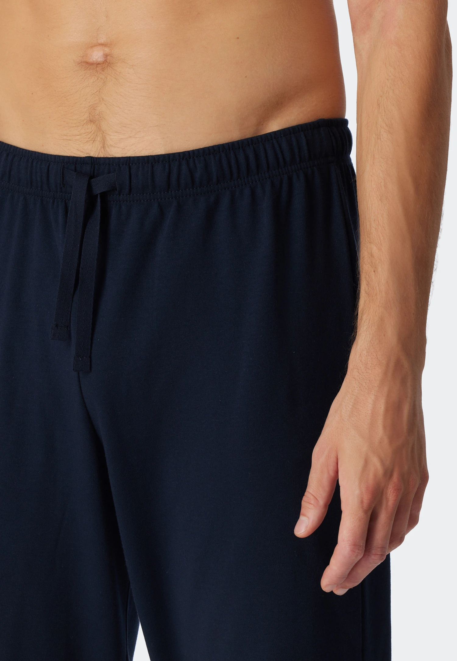 - dark blue pants with comfortable waistband and tone-on-tone drawstring