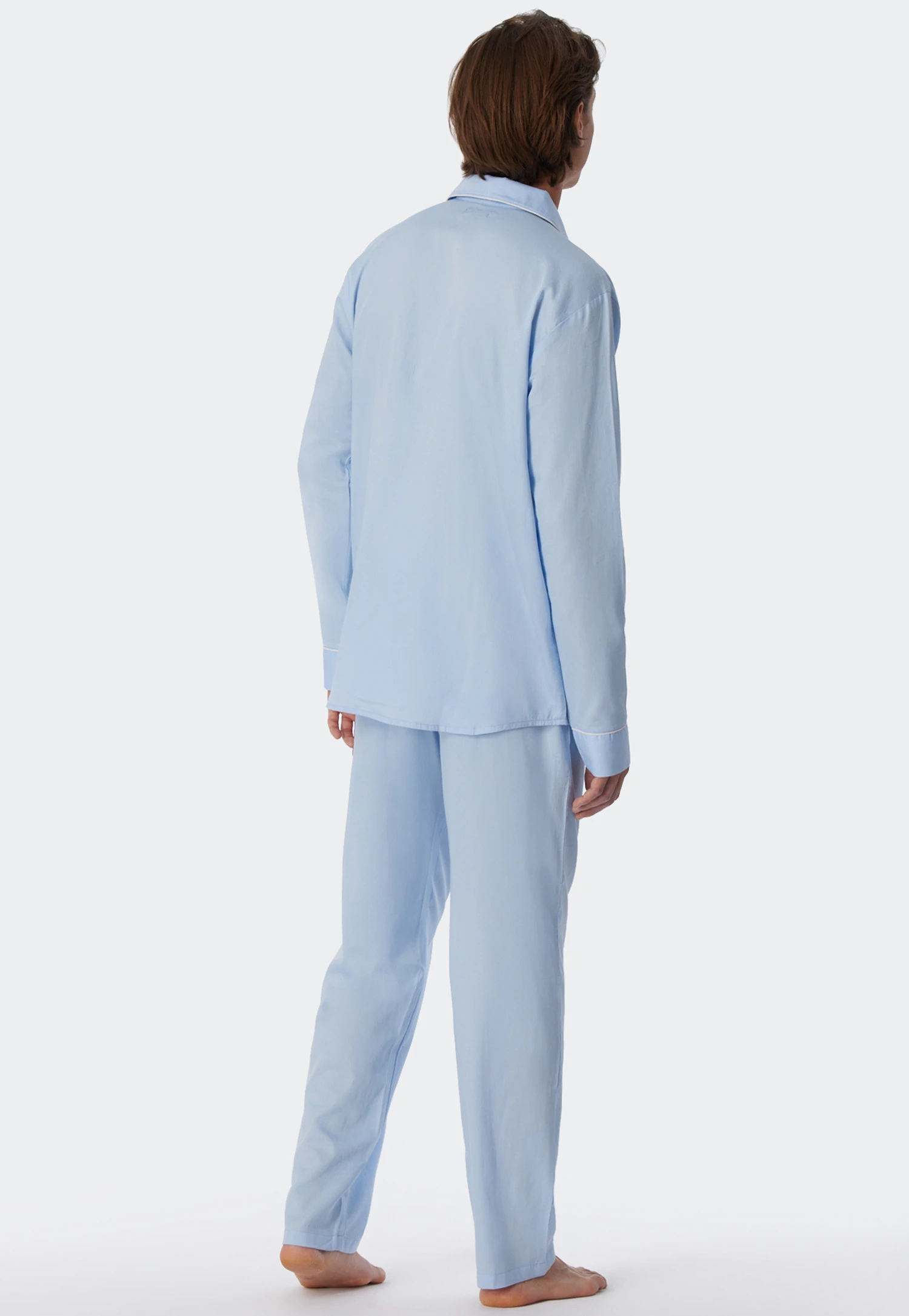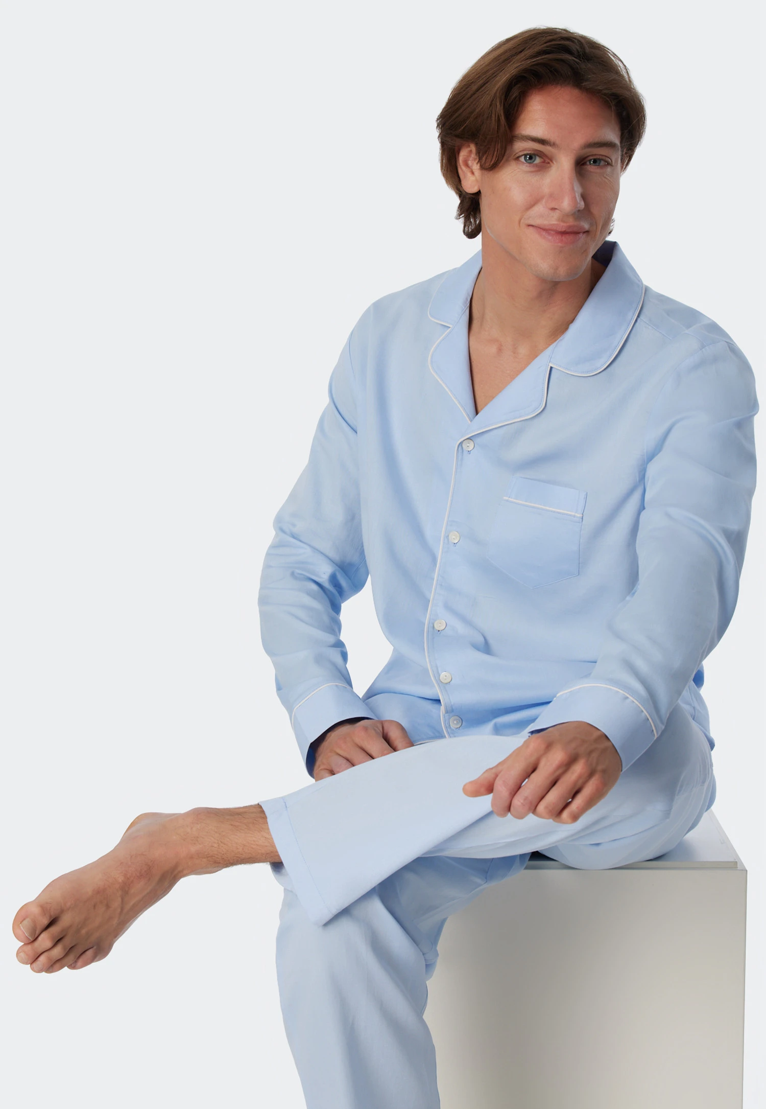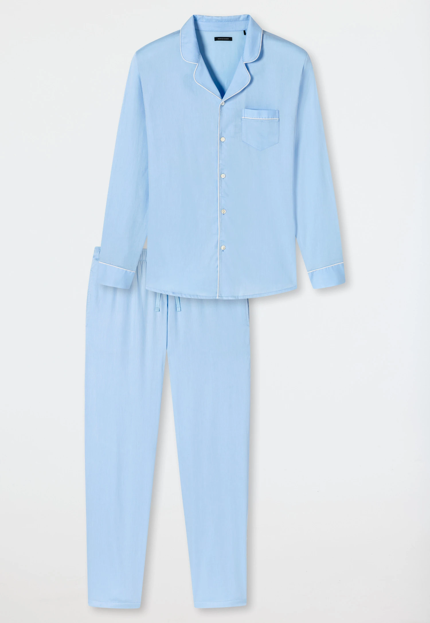 These men’s long pajamas are particularly elegant and comfortable. Thanks to the soft woven satin made from 100% organic cotton, this two-piece set feels particularly comfortable on the skin. Stylish details include the classic collar, button placket and breast pocket. The solid-colored piping is a stylish eye-catcher. Together with the long pants with tone-on-tone drawstring, this duo leaves nothing to be desired, all in the best SCHIESSER quality!