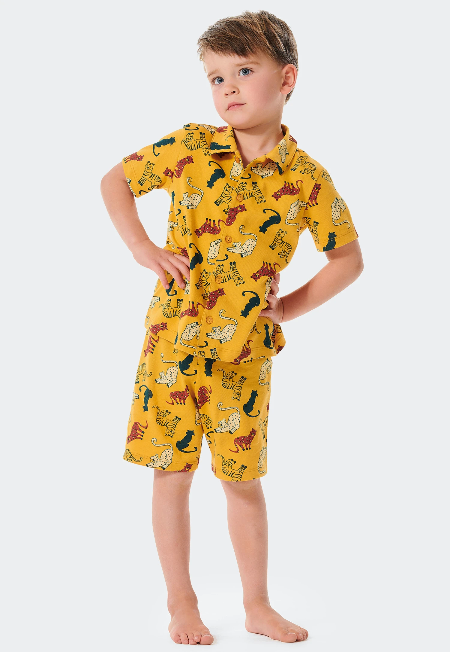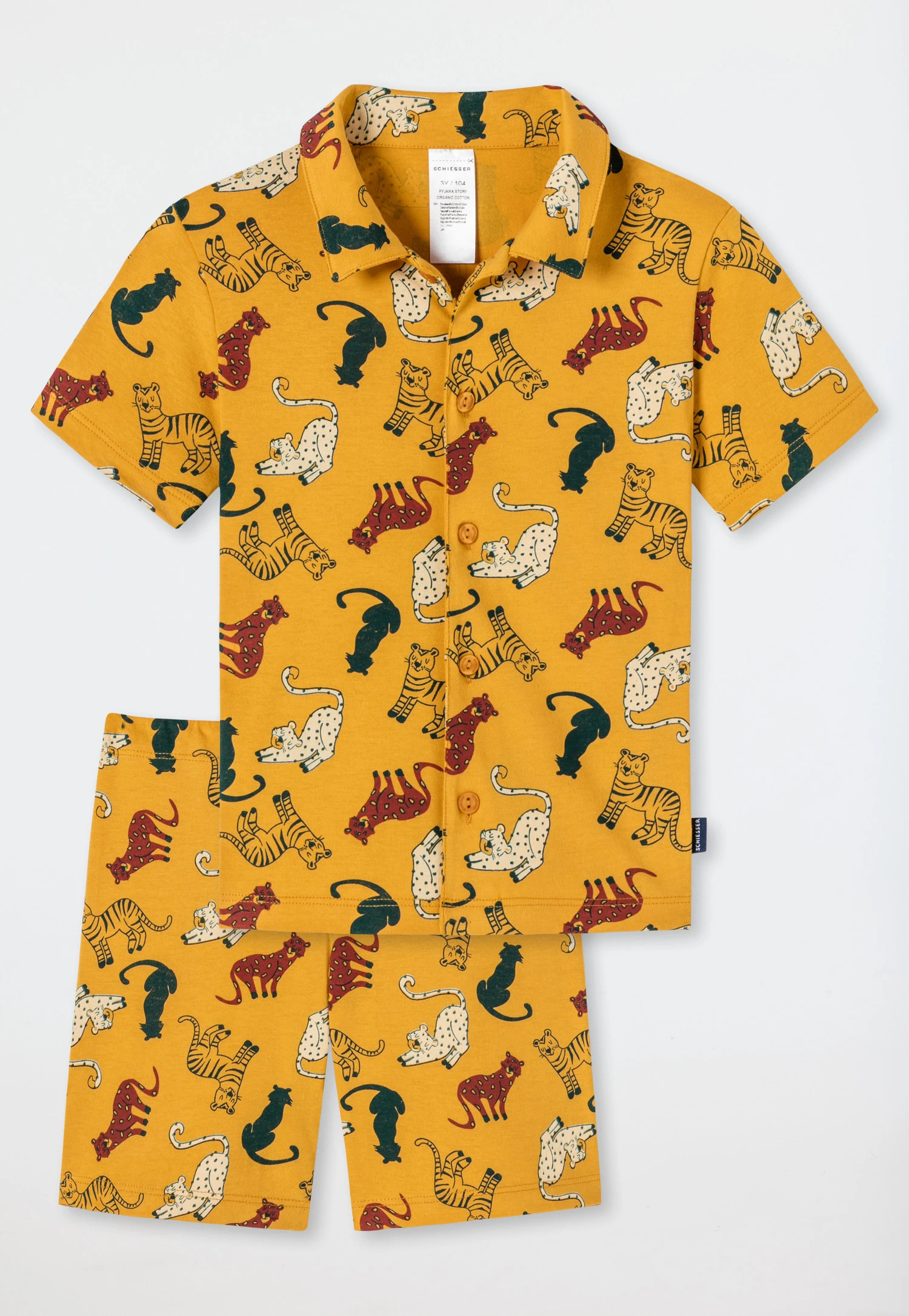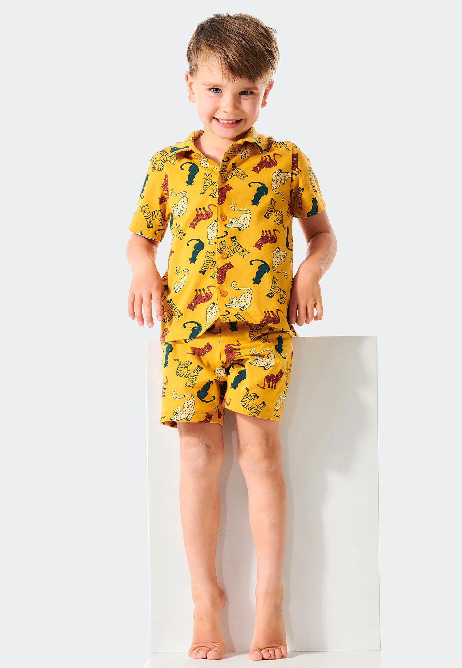 These boys’ short, yellow pajamas guarantee a real dream safari. With the colorful all-over pattern featuring cute leopards, this two-piece set not only looks particularly attractive, but also impresses with smart details: the full-length button placket is particularly practical when putting them on and thanks to the soft waistband, the pajama shorts also fit perfectly at night. Natural sleepwear made from 100% skin-friendly organic cotton and the best SCHIESSER quality!