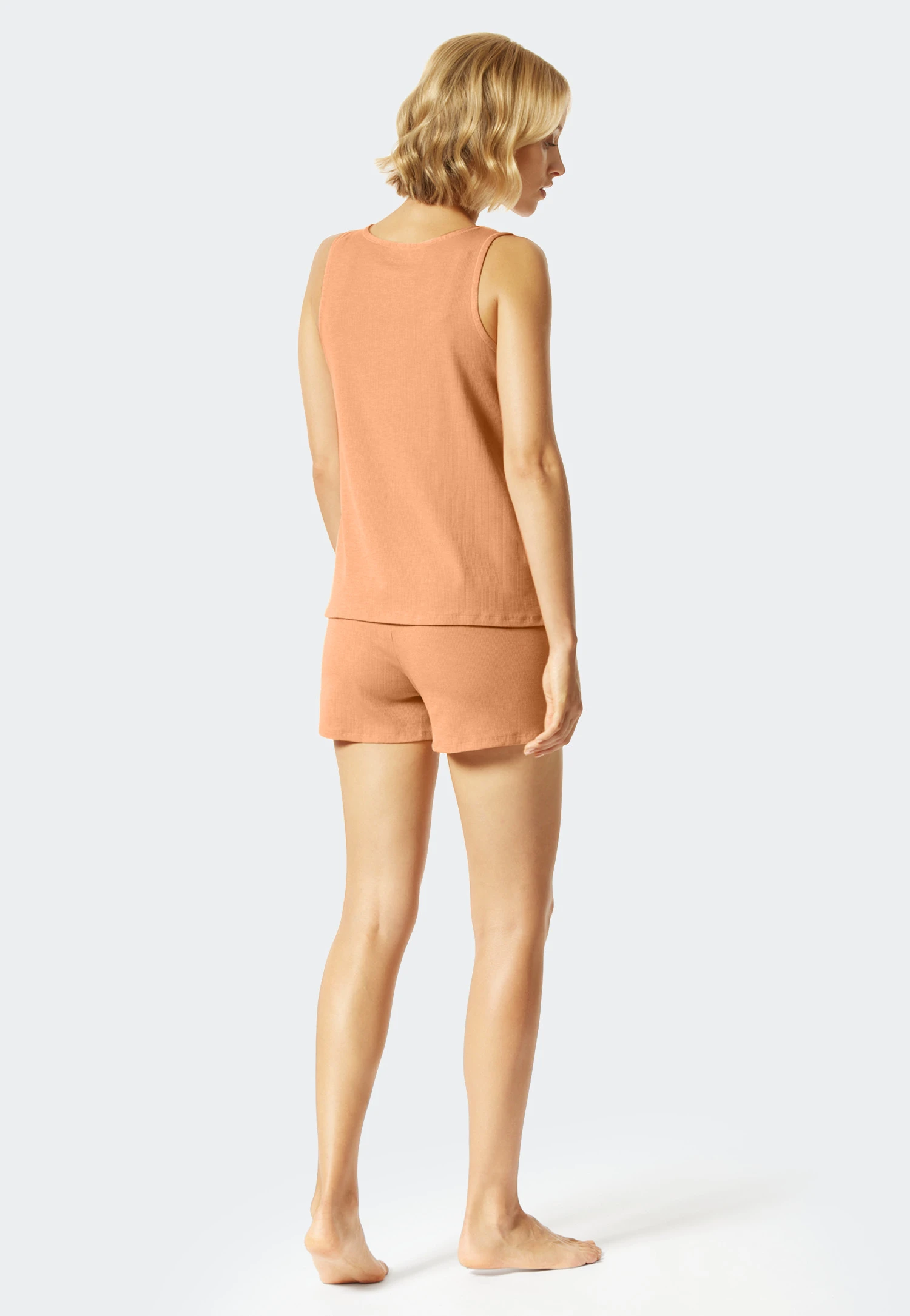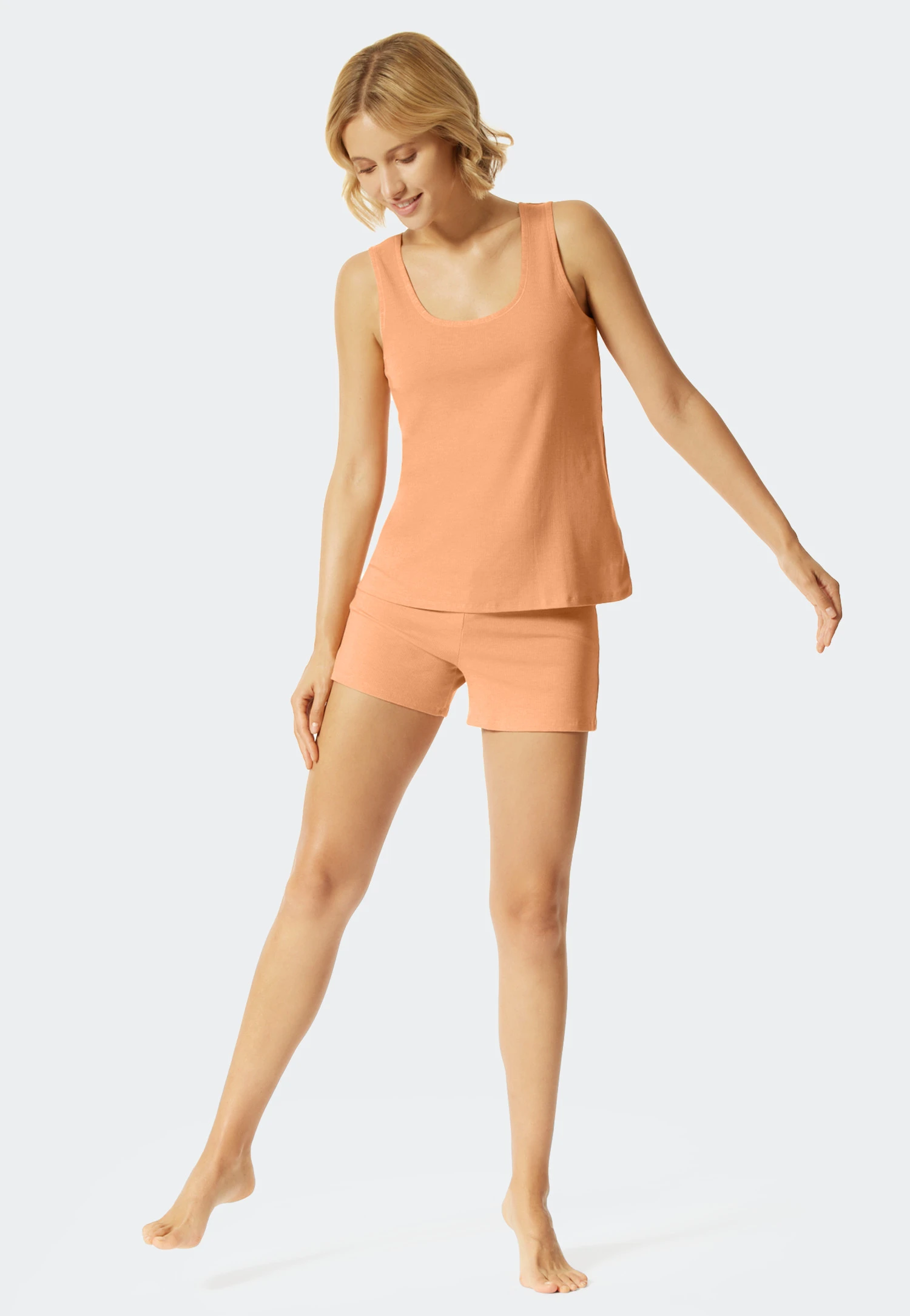 Do you like a pure and simple style? Then how about these women’s short pajamas? The sleeveless top looks wonderfully casual with its body-caressing silhouette and softly edged neckline. The simple pants with their smooth, elastic waistband go well with this. Our feel-good secret is the sustainably dyed double rib made of breathable modal with spandex. It provides plenty of freedom of movement and retains its softness even after many washes. Best SCHIESSER quality!