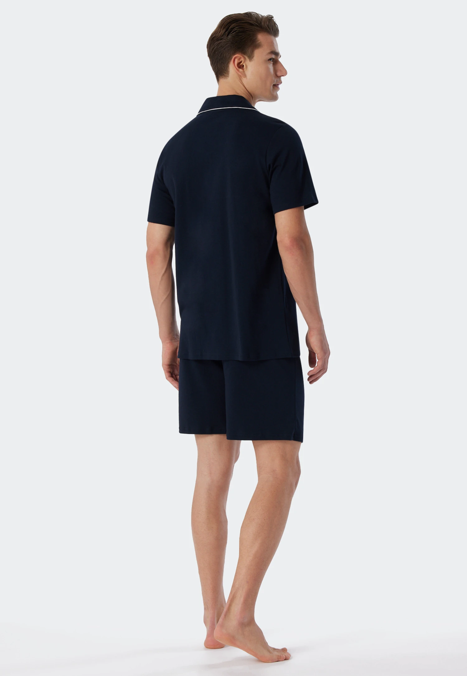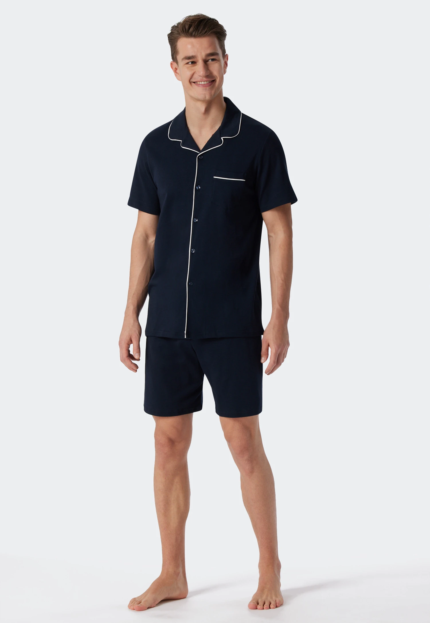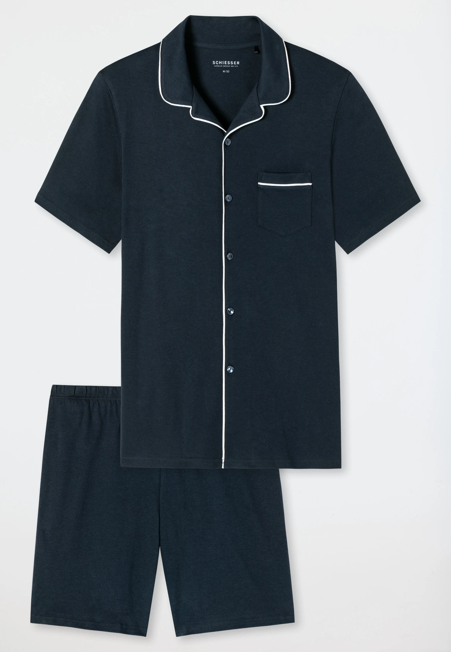 These short, dark blue men’s pajamas check all the boxes! With their slim cut, white piping and breast pocket, they exude pure elegance. Soft interlock made of 100% cotton ensures maximum comfort. So nothing stands in the way of a relaxing night in the best SCHIESSER quality!