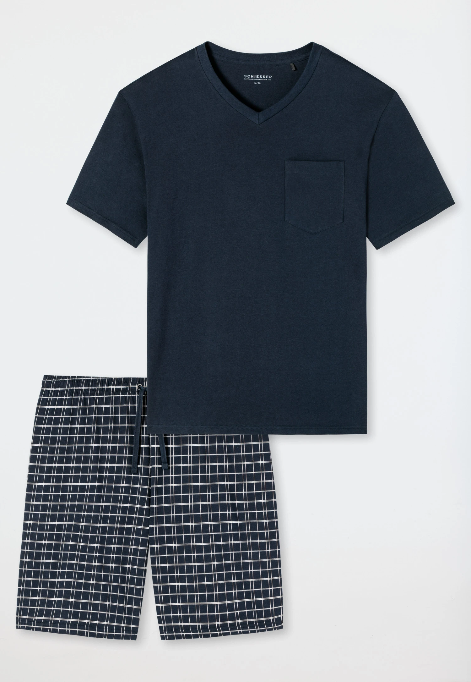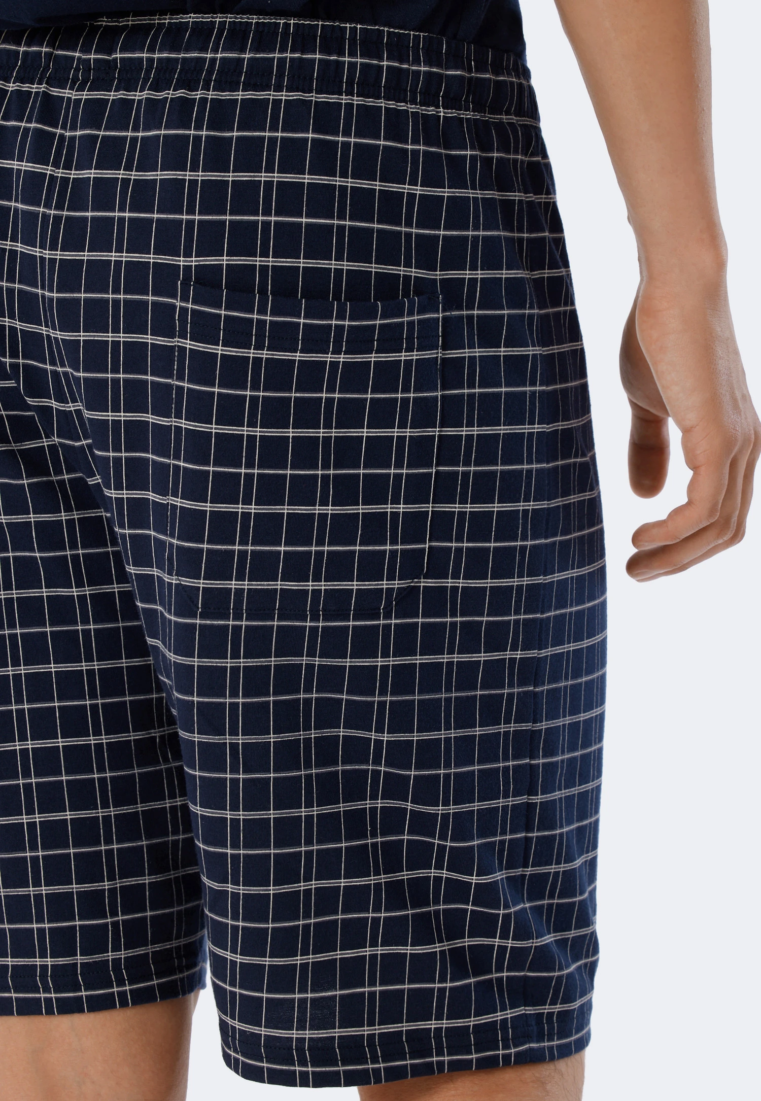 These short, blue pajamas score with discerning men thanks to their stylish design in 100% soft cotton. The top with V-neck and breast pocket has a great counterpart in the form of the short pants with blue and white check pattern, which feature practical details such as the drawstring at the waistband. Loose, lightweight single jersey adds comfort and promises pleasant nights with the best SCHIESSER quality!