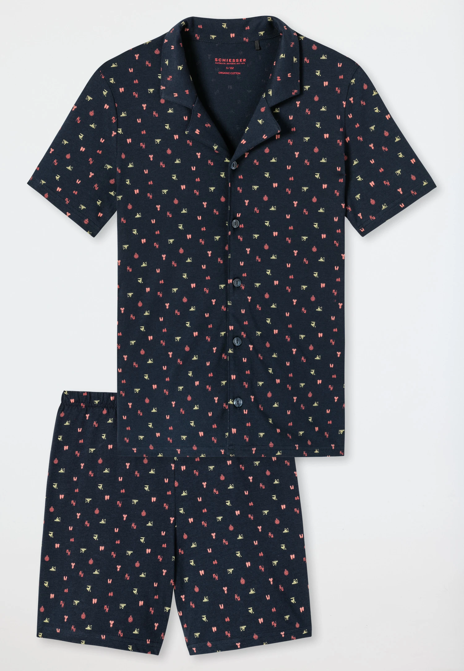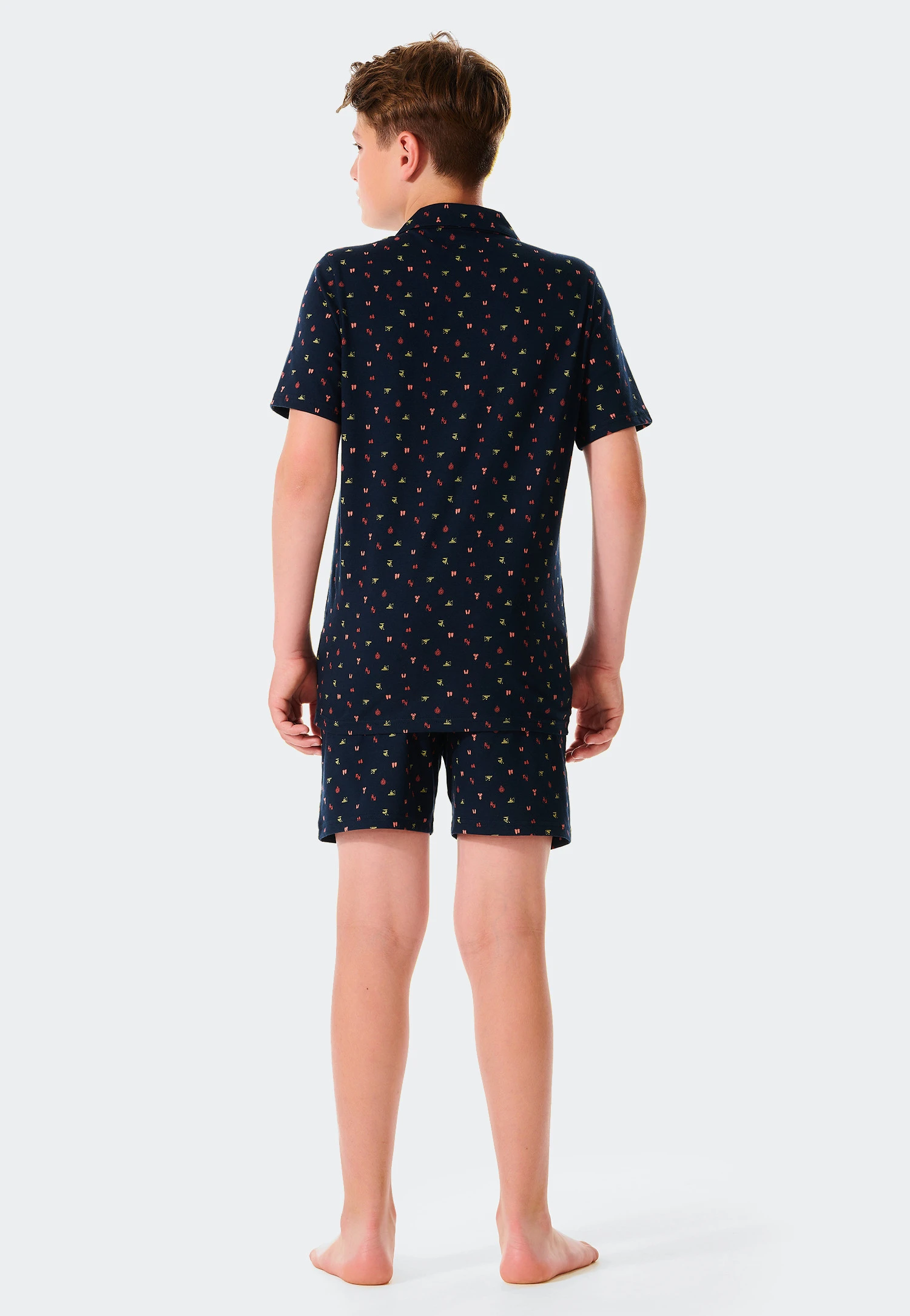 Sports-loving boys will be absolutely delighted by the cool look of these boys’ short, dark blue pajamas! The colorful athlete pattern is a trendy highlight on the T-shirt with shirt collar and button placket and on the bottoms with their comfortable waistband. In soft single jersey made of 100% organic cotton, this two-piece set guarantees exciting dreams in the best SCHIESSER quality!