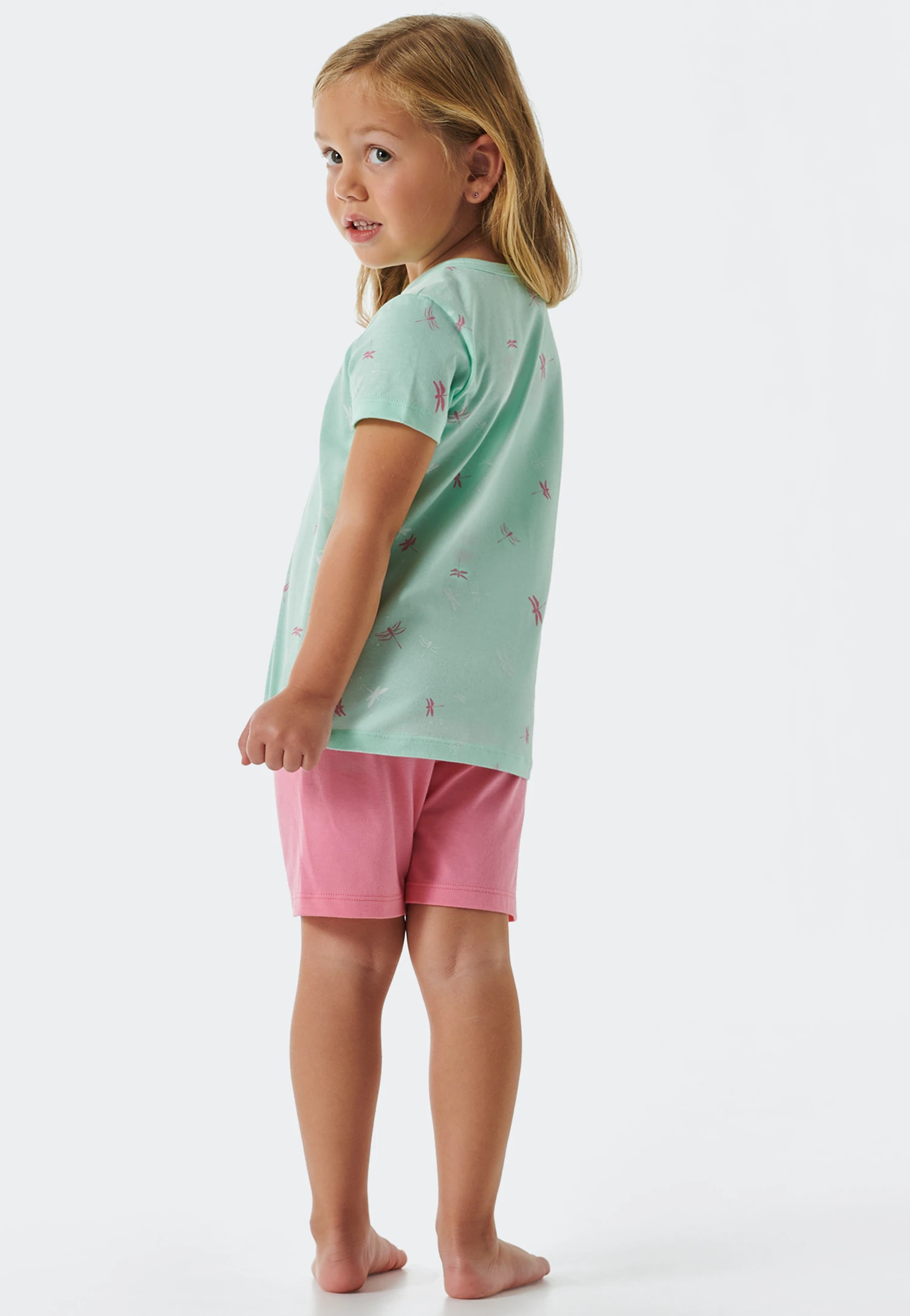 These short girls’ pajamas are just the thing for all your little Cat Zoe fans. The mint-color top simply looks as sweet as sugar with its all-over pattern of pretty dragonflies and a cute cat print. The high-quality single jersey material made from 100% soft organic cotton feels particularly soft and comfortable on the skin. Add in the casual sleep pants in pink and a ton of the very best SCHIESSER quality, and your very next dream adventure can begin.